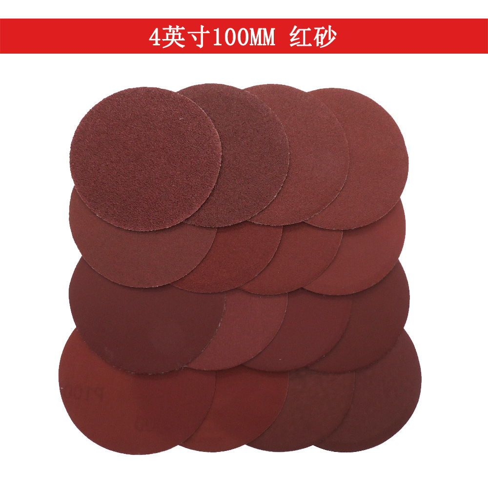 4inch 레드 샌드 원형 디스크 벨벳 샌드페이퍼 연마 및 광택용 자가 접착 샌드페이퍼 건식 샌드페이퍼 금속 녹 제거용 벨벳 샌드페이퍼