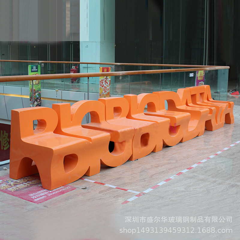 유리 섬유 강화 플라스틱 쇼핑몰 대형 상업 좌석 편지 모양 공공 휴식 공간 대기 의자 창조적 인 레저 의자스토어 가기