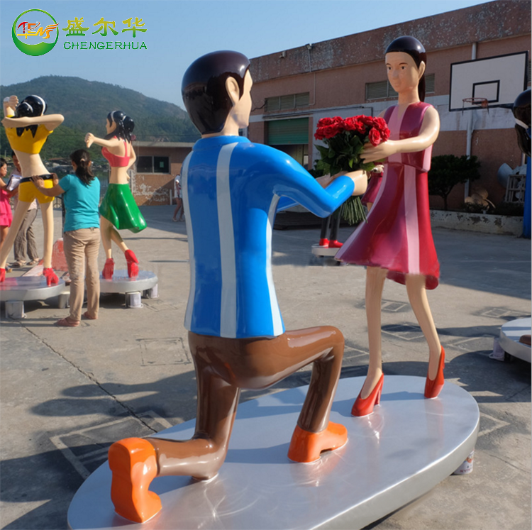 유리 섬유 강화 플라스틱 로맨틱 커플 구애 테마 그림 조각 야외 공원 광장 보행자 거리 쇼핑몰 장식 장식품스토어 가기