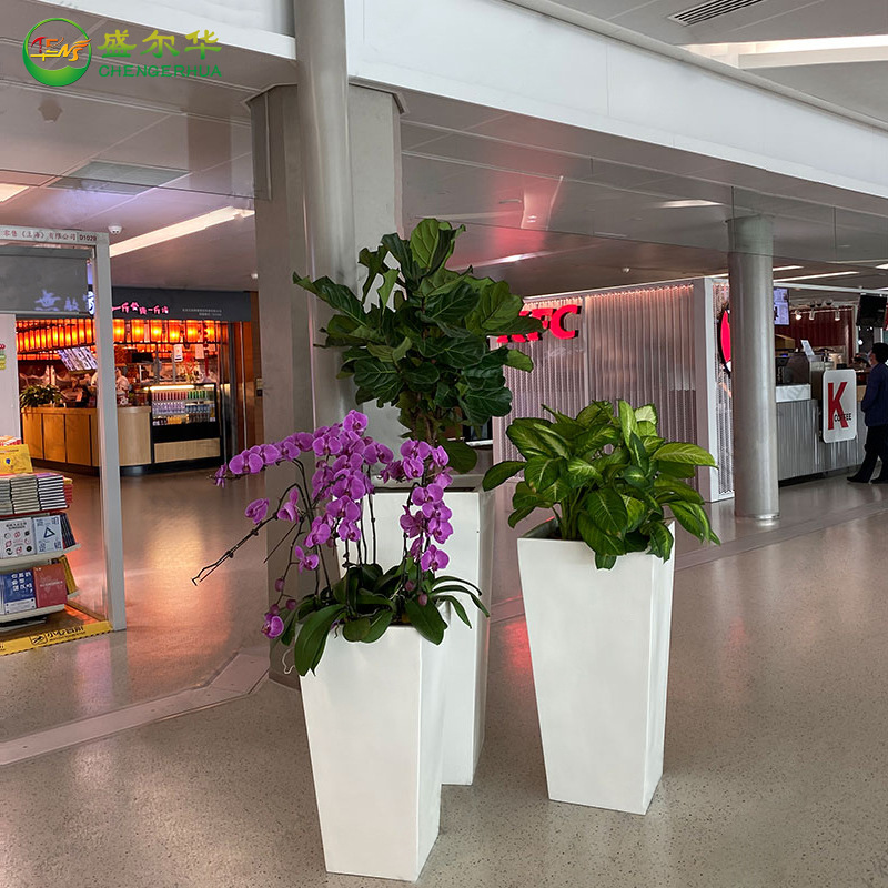 유리 섬유 강화 플라스틱 사각형 꽃 냄비 아름다운 첸 바닥 큰 꽃병 꽃병 홀 쇼핑몰 호텔 복도 장식 장식품스토어 가기