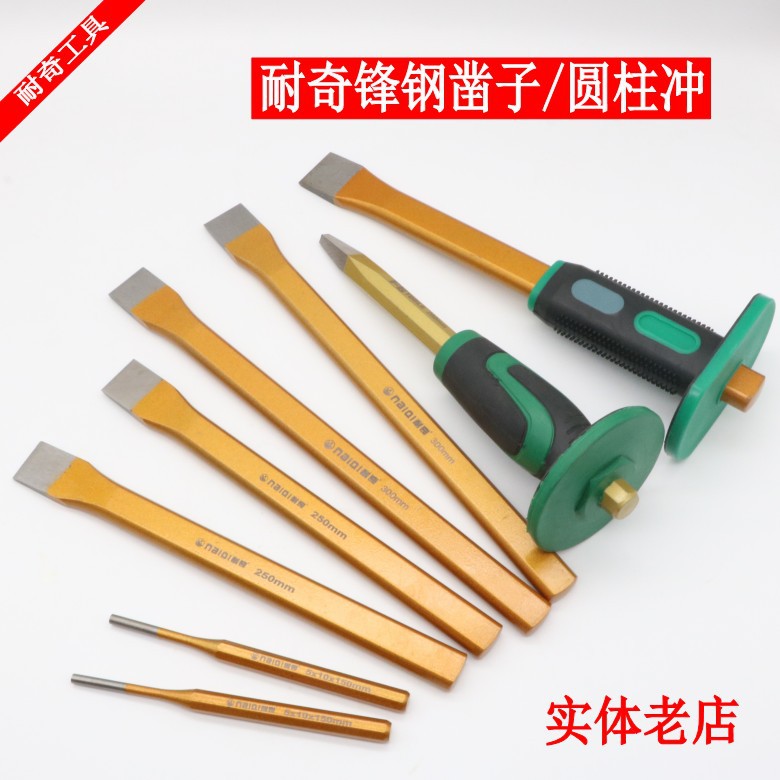 고무 장갑 앞 강철 끌 평평한 합금 강철 평평한 끌 원통형 중앙 펀칭 돌 끌 세트 철 도매
