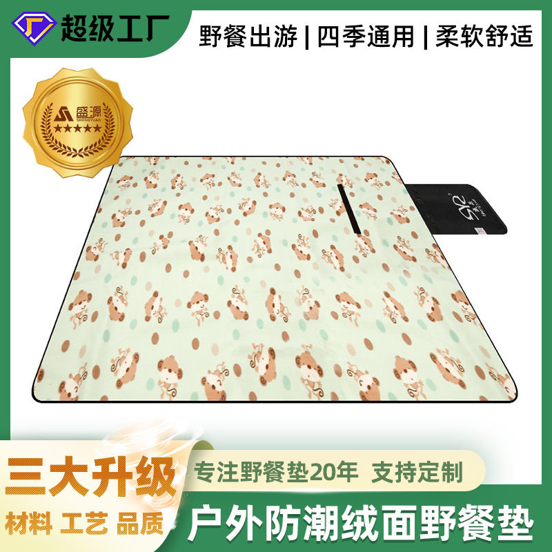 【产品特点】:露营时外出野餐时就餐使用,无毒柔软的绒面,底部为黑色腹膜,防水;也可以做儿童爬行垫,携带方便,包装体积小