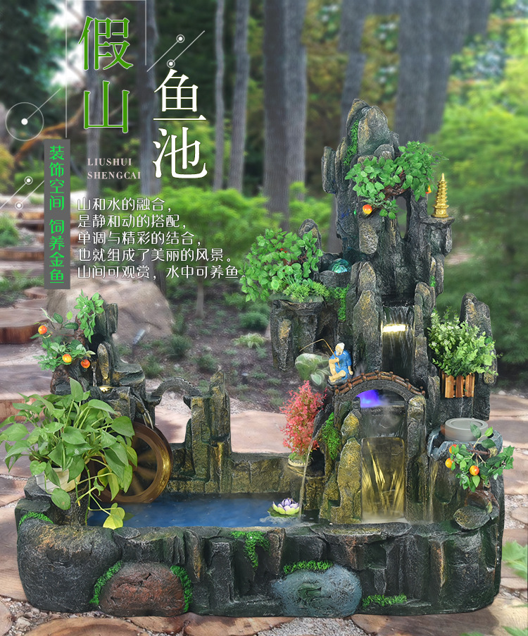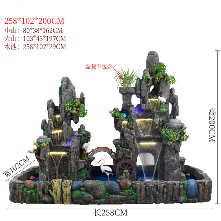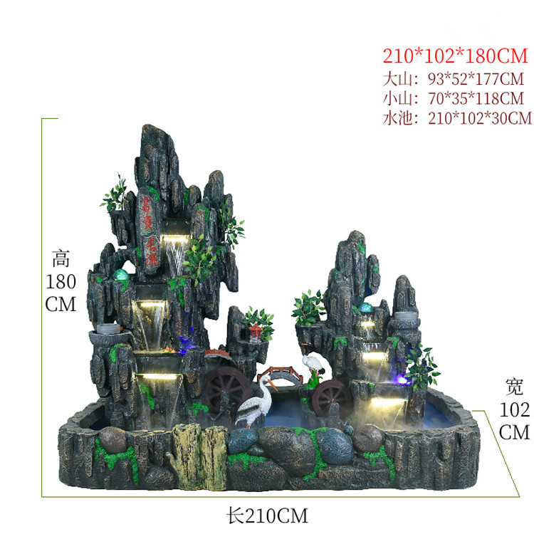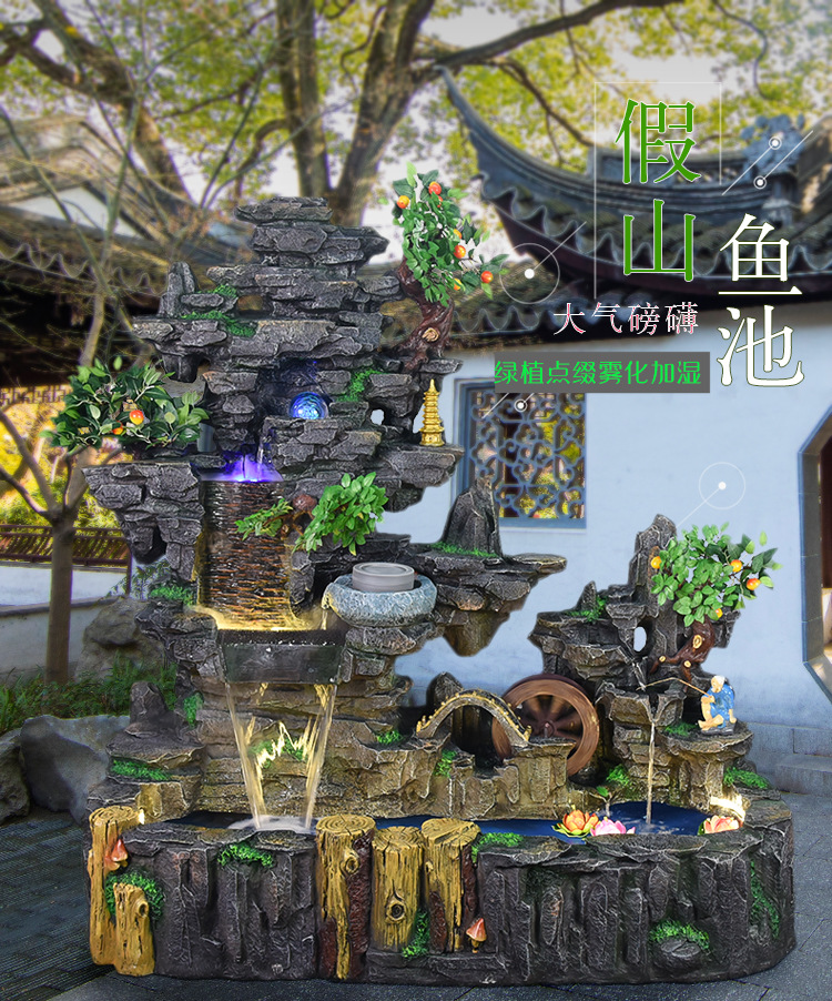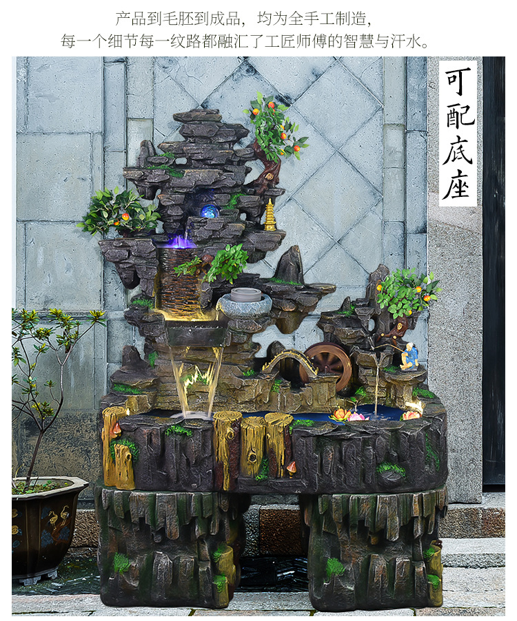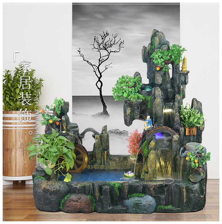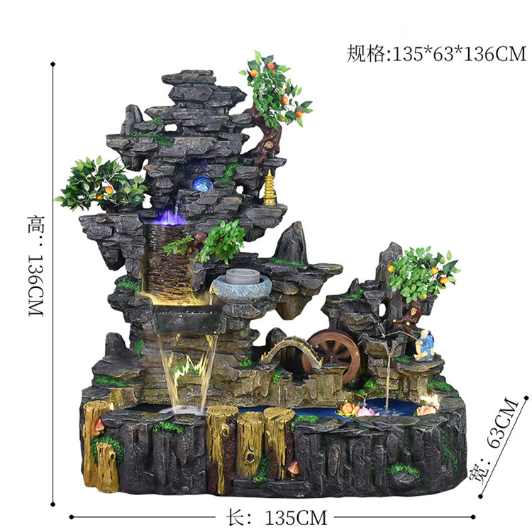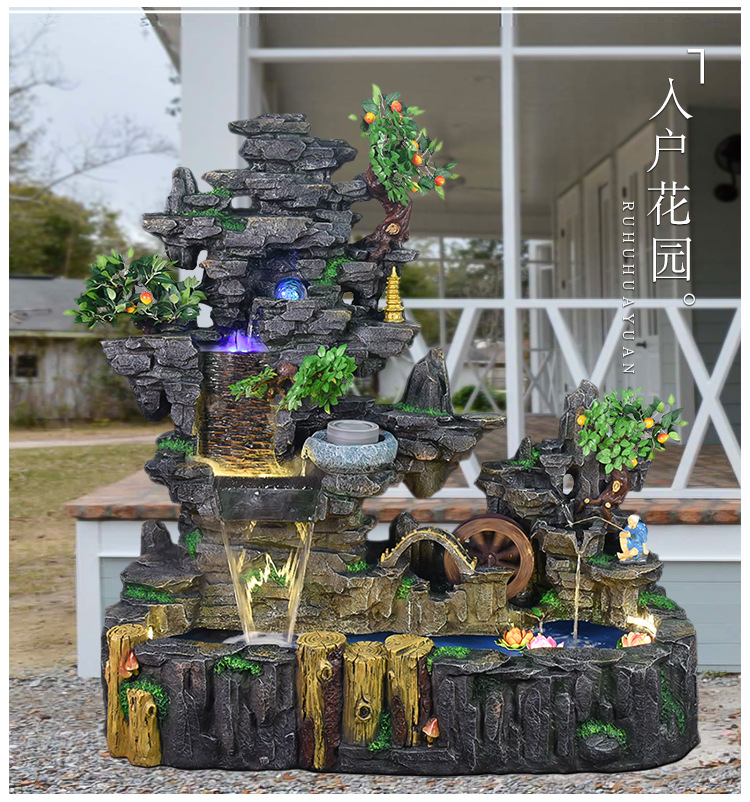 봄 Fangyuan 재고 대형 rockery 흐르는 물 장식품 수지 분수 물 바퀴 바닥 장식 실내 어조 풍경