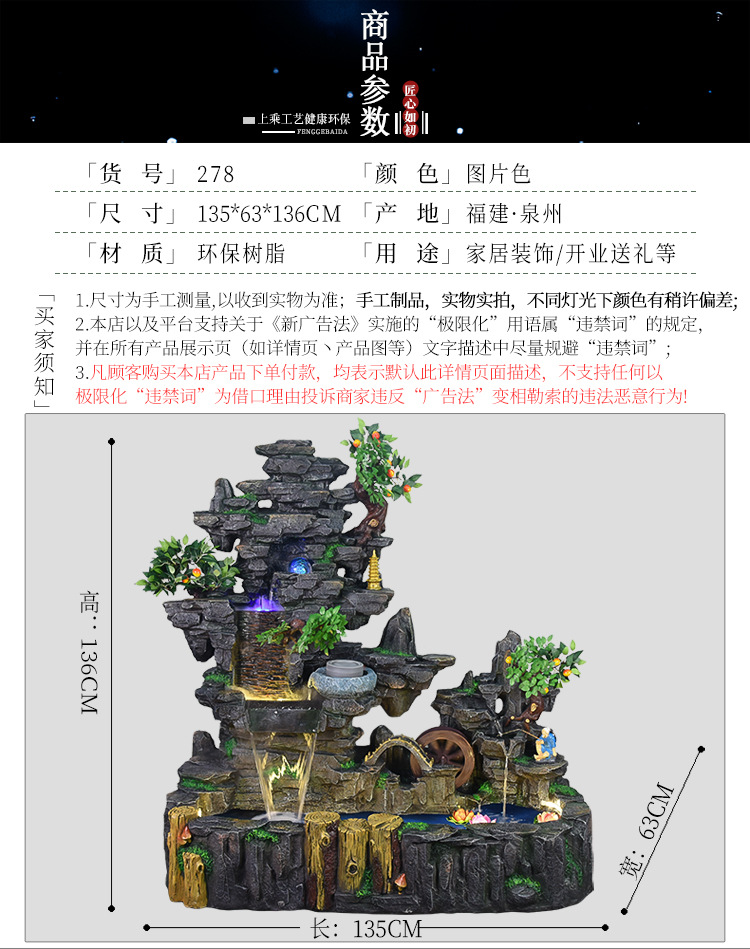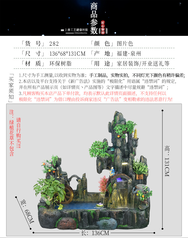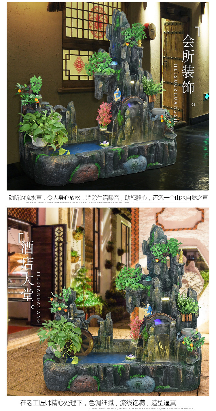 봄 Fangyuan 재고 대형 rockery 흐르는 물 장식품 수지 분수 물 바퀴 바닥 장식 실내 어조 풍경스토어 가기