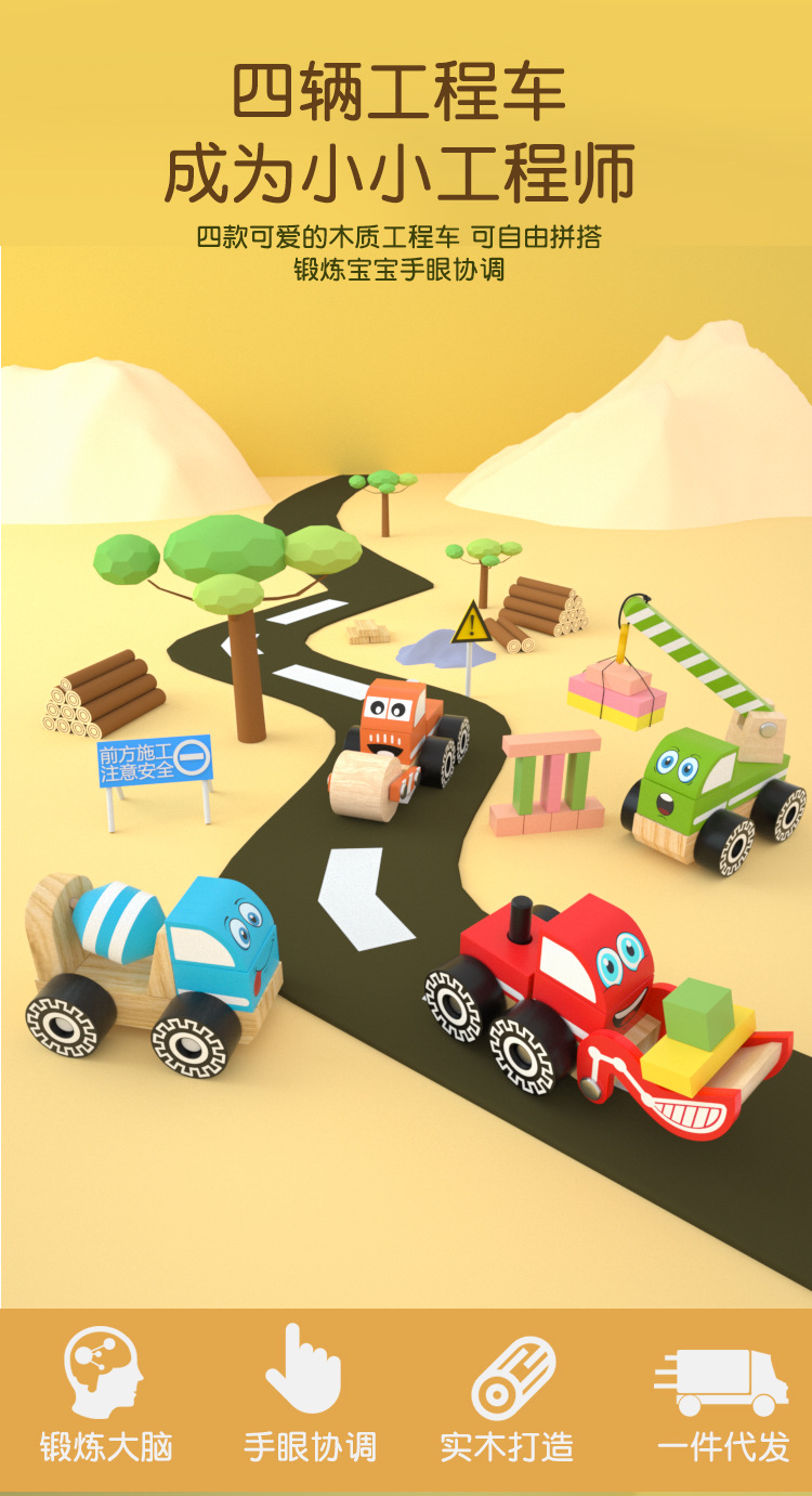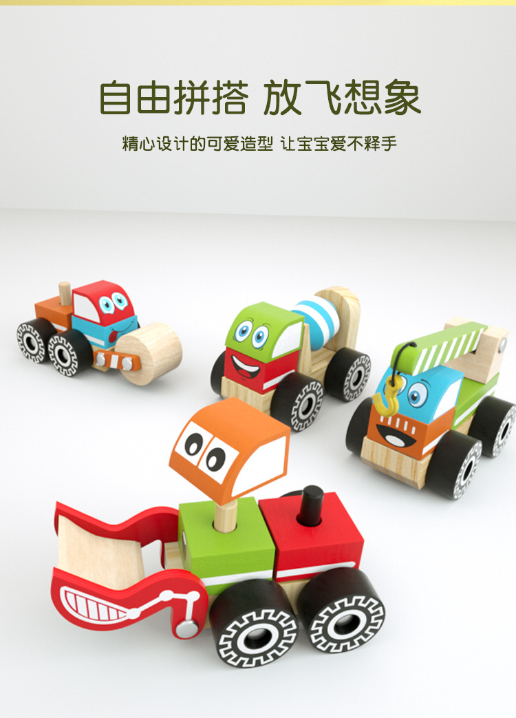 장난감 어린이용 목재 공사차량 나무 조립 조합 목재 블록 크레인 목재차량 모델 제조업체 도매스토어 가기