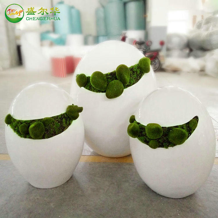 유리 섬유 강화 플라스틱 현대 계란 모양 조합 꽃 냄비 쇼핑몰 호텔 아름다움 첸 장식 웃는 얼굴 바닥 꽃 장식품