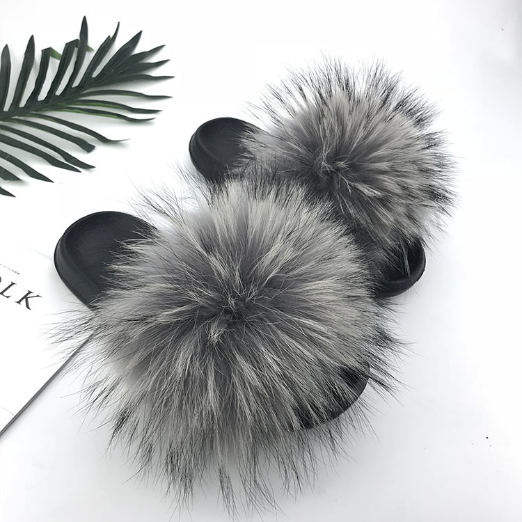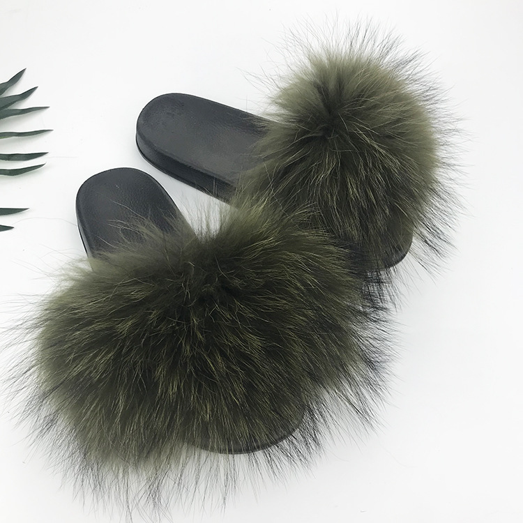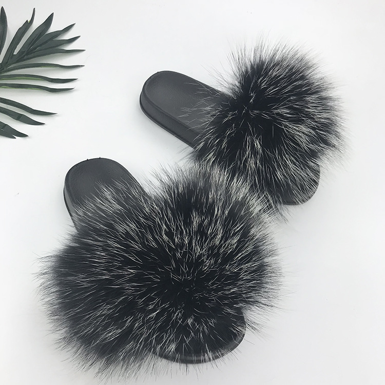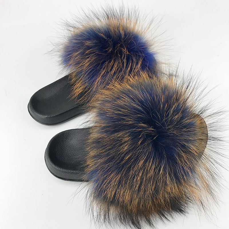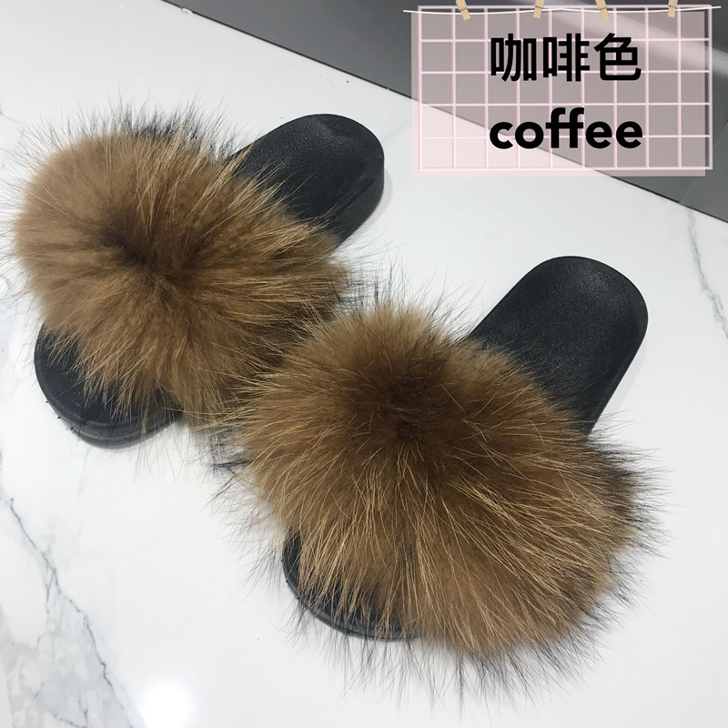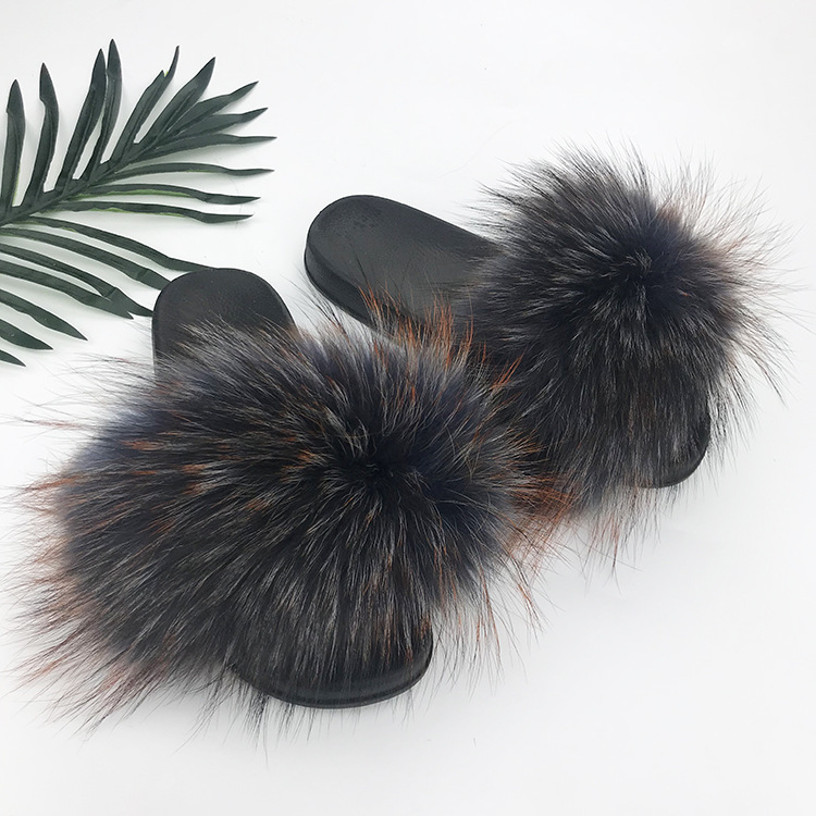 재고 새로운 푹신한 신발 너구리 모피 여우 모피 슬리퍼 여성용 크로스 보더 유럽 역 모피 슬라이드스토어 가기