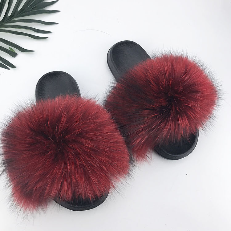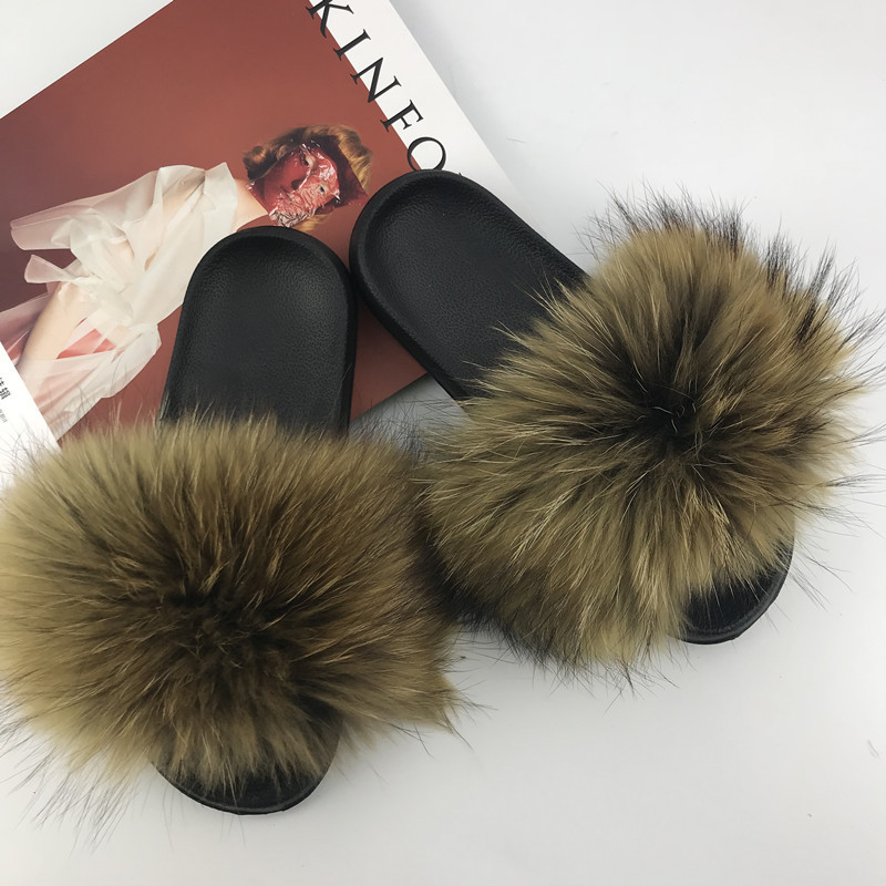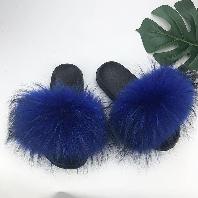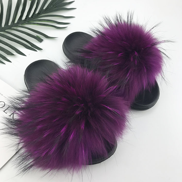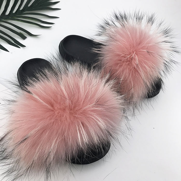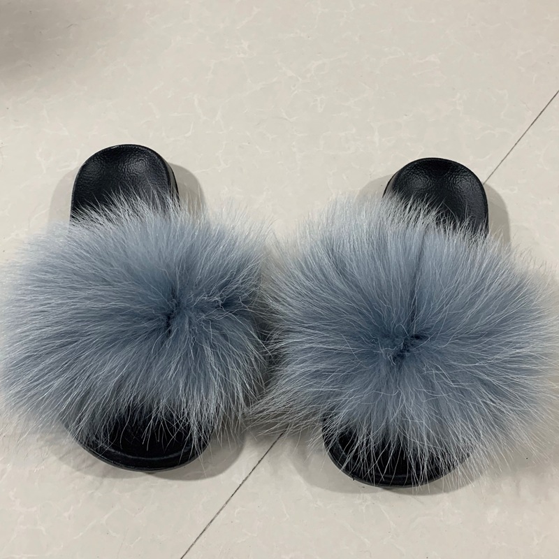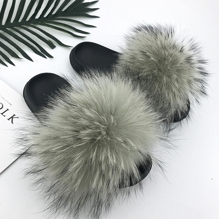재고 새로운 푹신한 신발 너구리 모피 여우 모피 슬리퍼 여성용 크로스 보더 유럽 역 모피 슬라이드스토어 가기