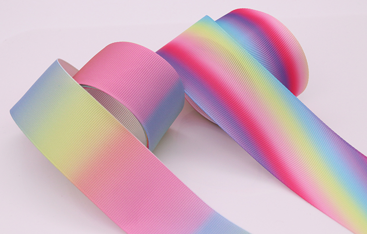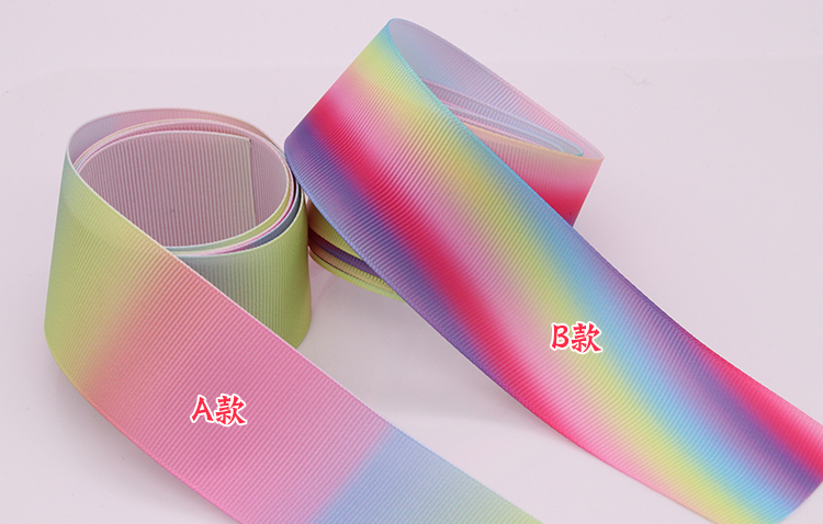 2.5cm3.8cm 무지개 그라데이션 인쇄 리본 리본 리본 활 DIY 만화 인쇄 리브스토어 가기