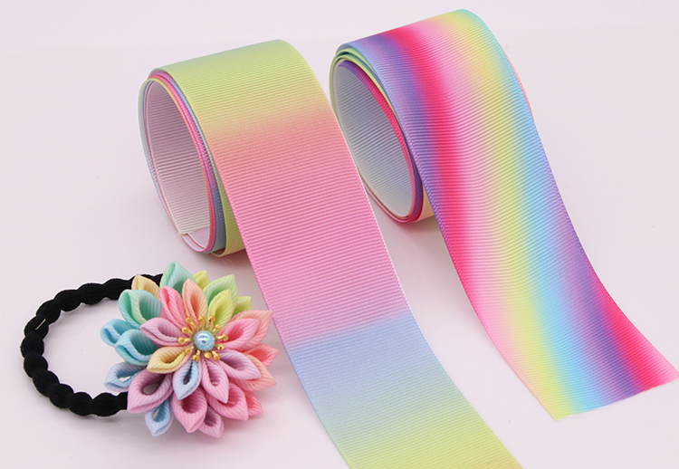 2.5cm3.8cm 무지개 그라데이션 인쇄 리본 리본 리본 활 DIY 만화 인쇄 리브