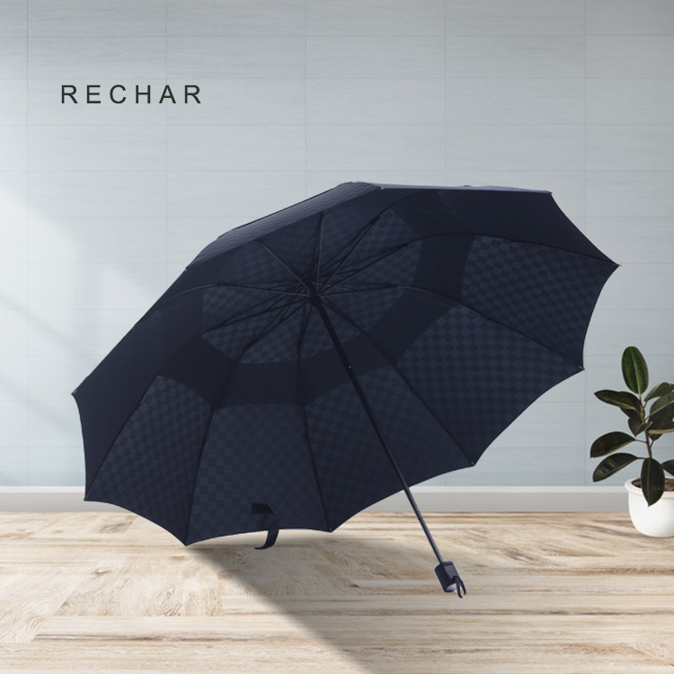 • 10 뼈 양각 27 인치 수동 더블 레이어 우산 다크 블루