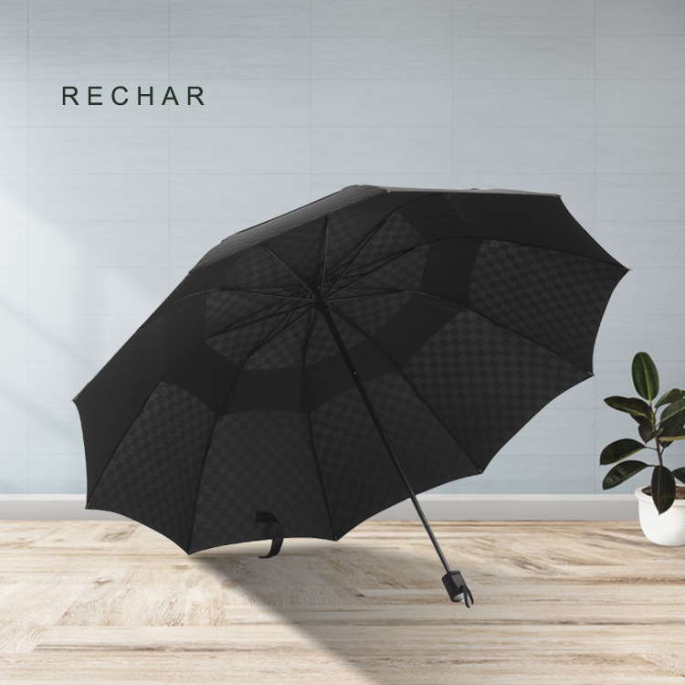 • 10 뼈 양각 27 인치 수동 더블 레이어 우산 블랙