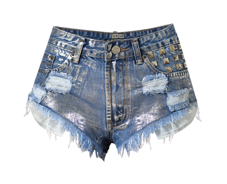 유럽과 미국 여성의 하이 웨이스트 슬림 핏 마모 리벳 데님 핫 팬츠 메탈 핫 실버 핫 스탬핑 스트리트 팬츠 대형 가능스토어 가기