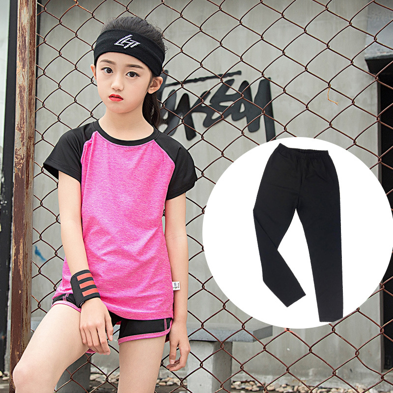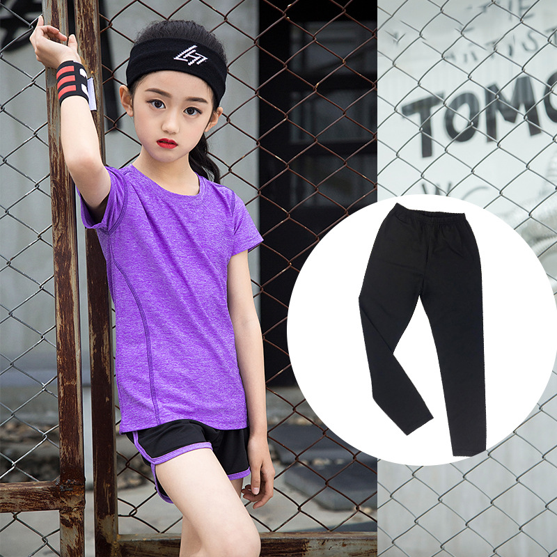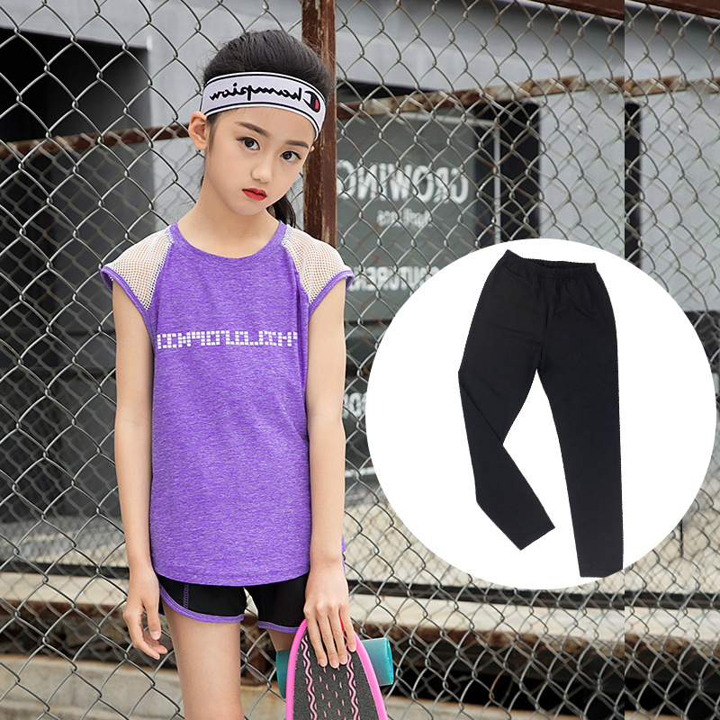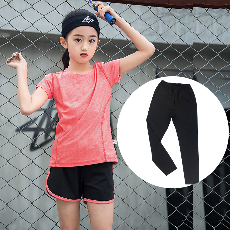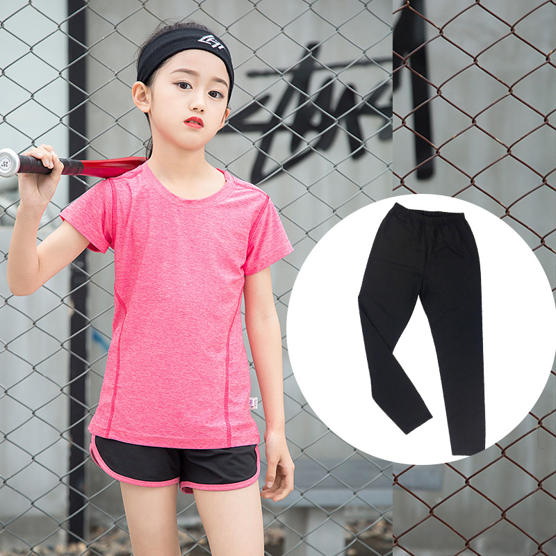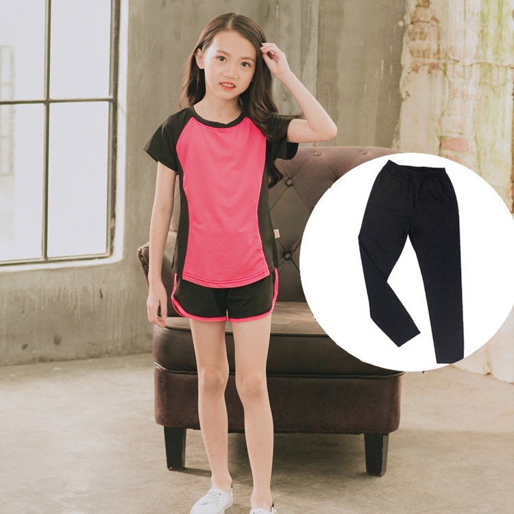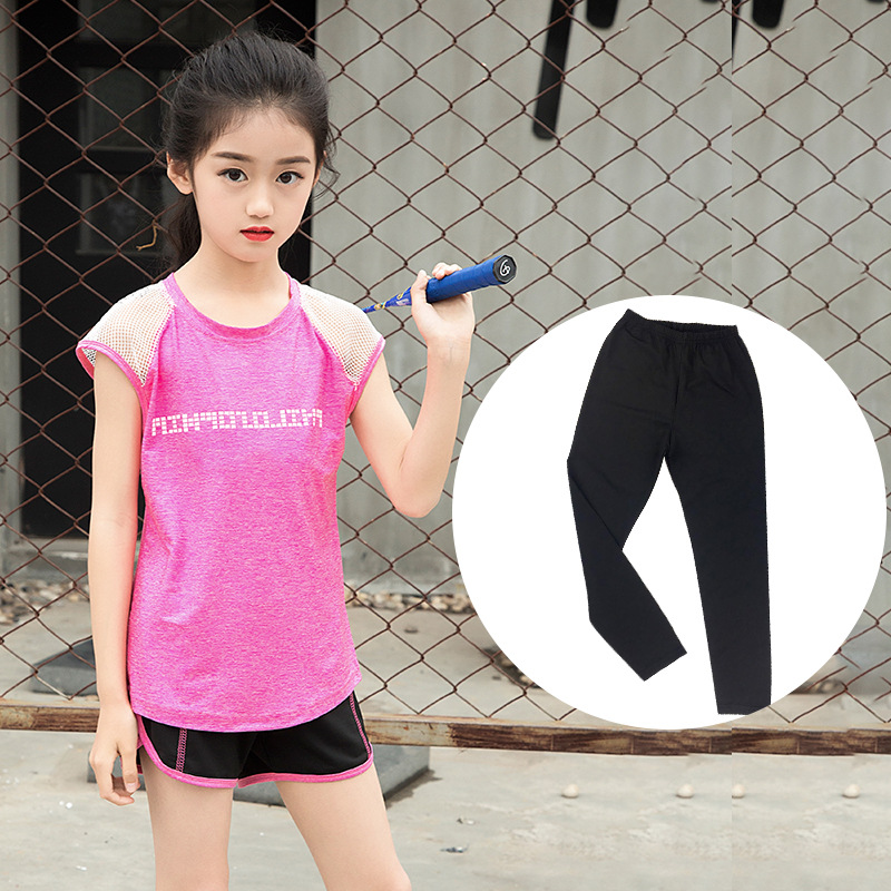 여름 새 요가 옷 스포츠 세트 어린이 실행 옷 느슨한 속건 반팔 3 피스 도매스토어 가기