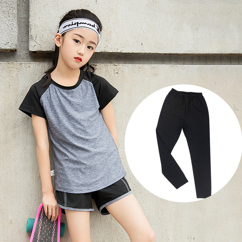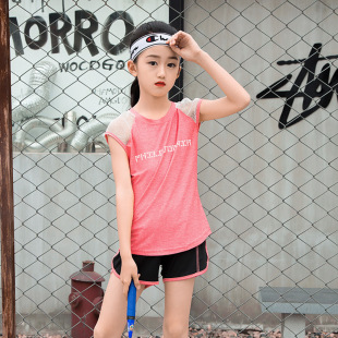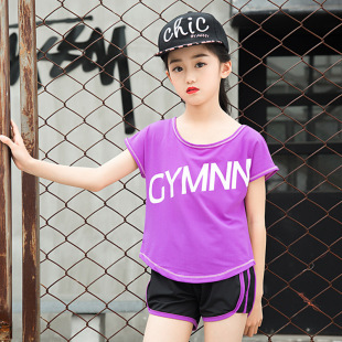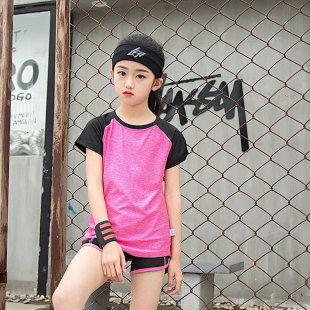 여름 새 요가 옷 스포츠 세트 어린이 실행 옷 느슨한 속건 반팔 3 피스 도매