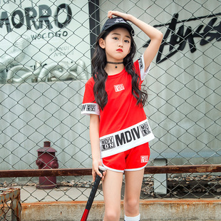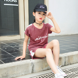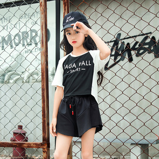 夏季新款童装韩版休闲两件套印花英文T恤运动服套装速干跑步批发