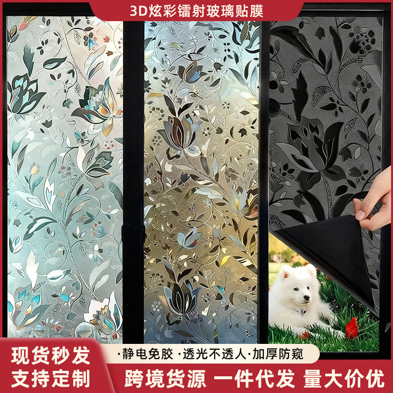 정전기 접착제가없는 유리 필름 다채로운 레이저 창 스티커 유리 종이 젖빛 차양 단열 자외선 차단제 창 필름스토어 가기