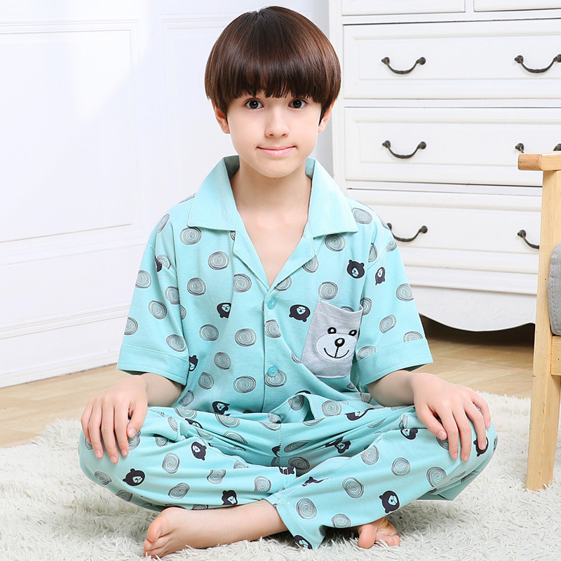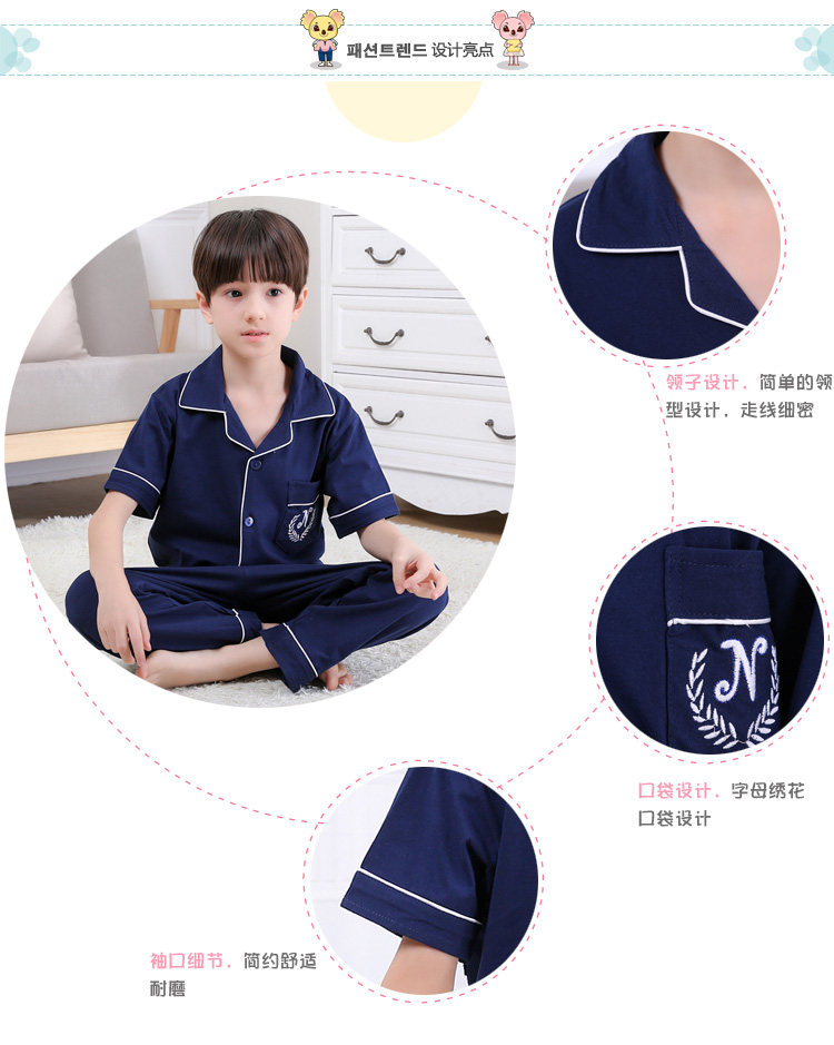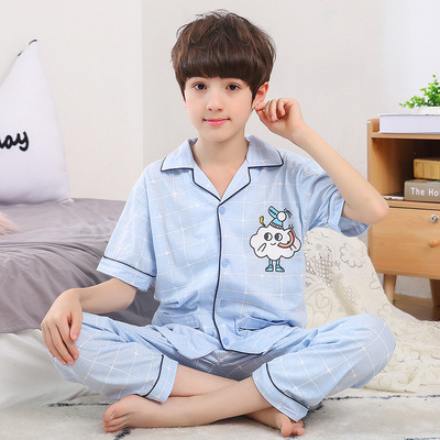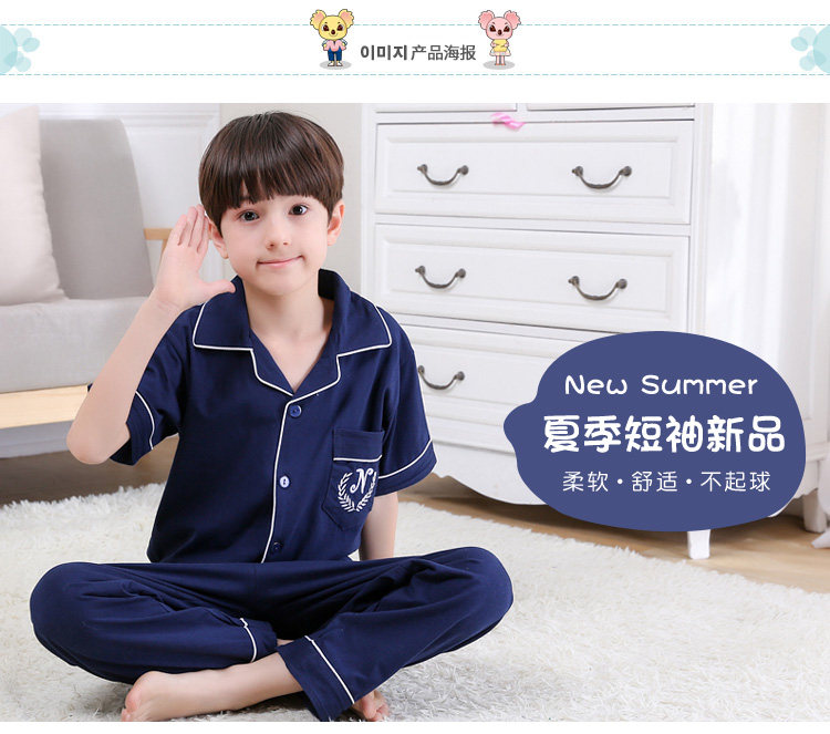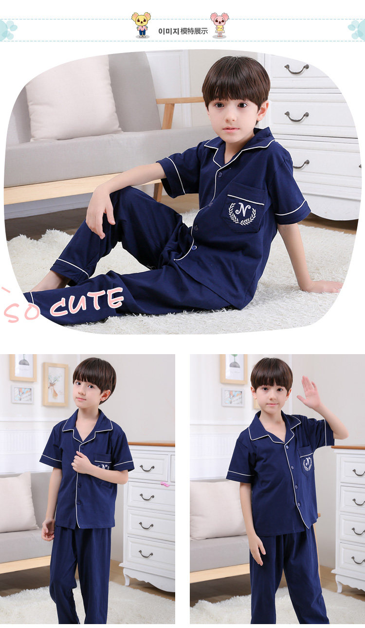 어린이 잠옷 소년의 여름 어린이 얇은 반팔 바지 여름 소년 가정 의류 대형 어린이 순면 세트스토어 가기