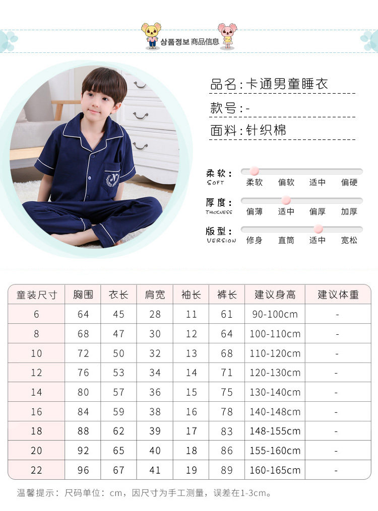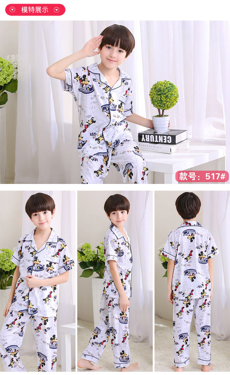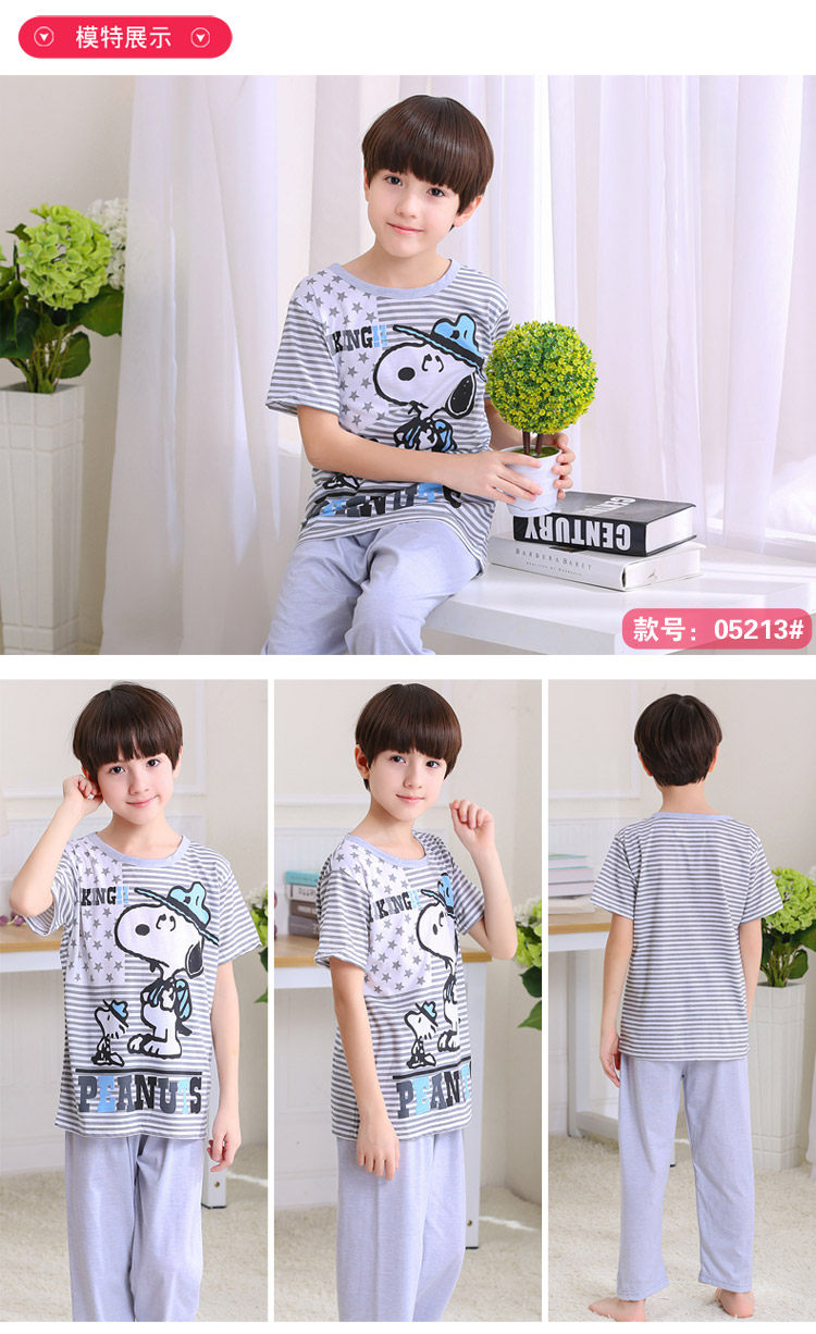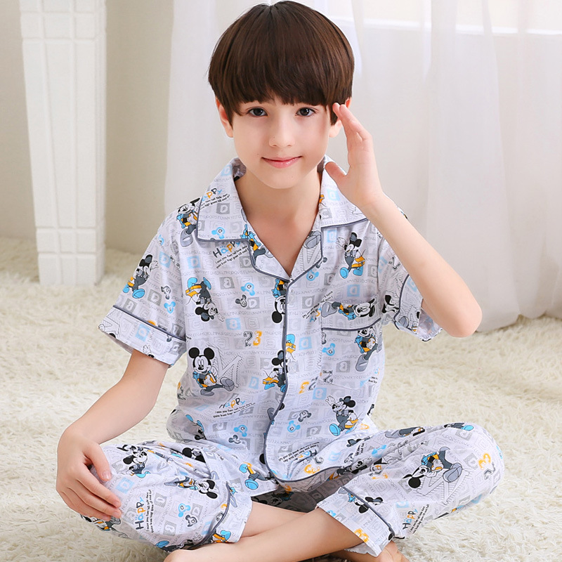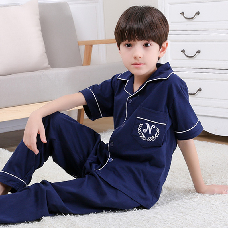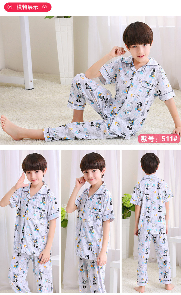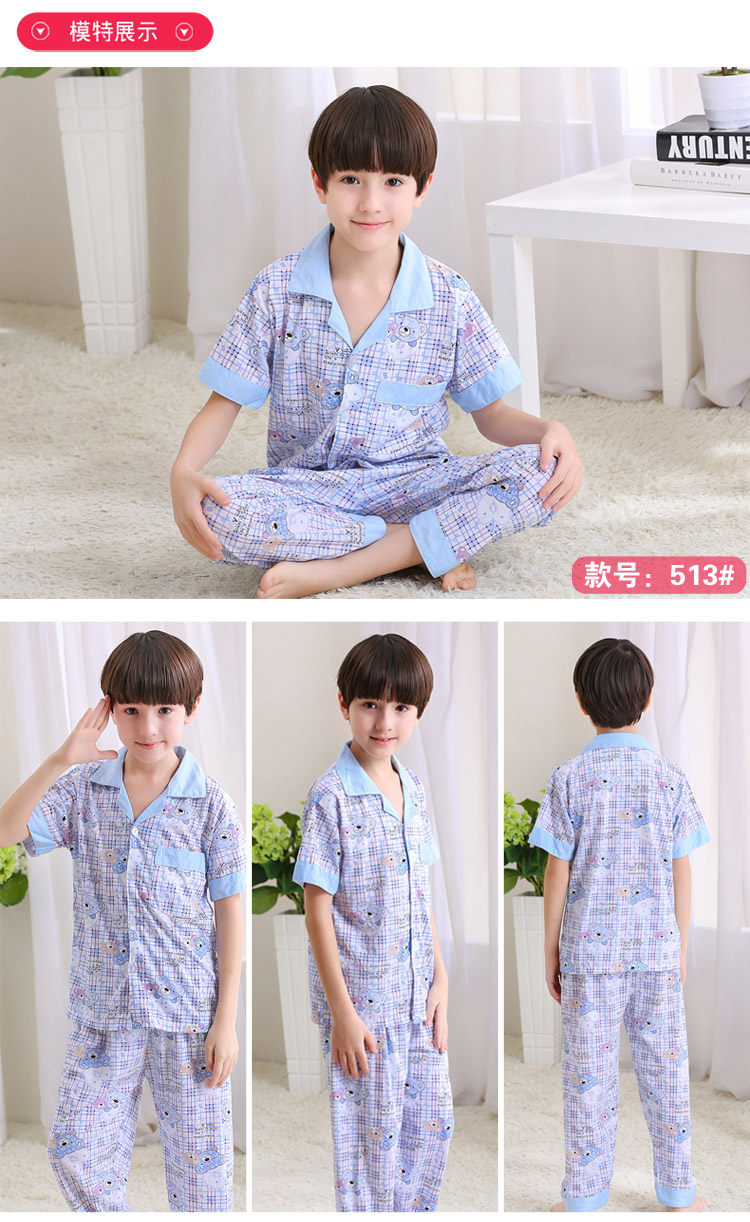 어린이 잠옷 소년의 여름 어린이 얇은 반팔 바지 여름 소년 가정 의류 대형 어린이 순면 세트