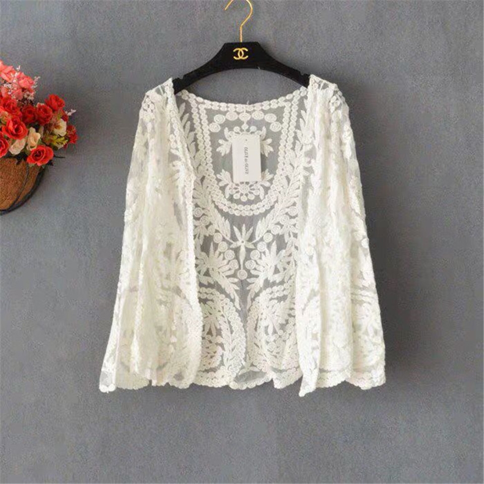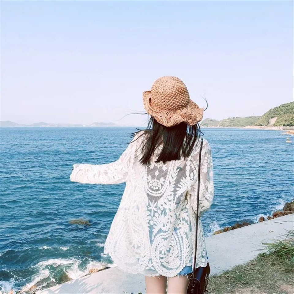 여성 신작 봄 일본식 달콤한 크로 셰 뜨개질 레이스 긴팔 버튼리스 카디건 여성용 중공 블라우스스토어 가기