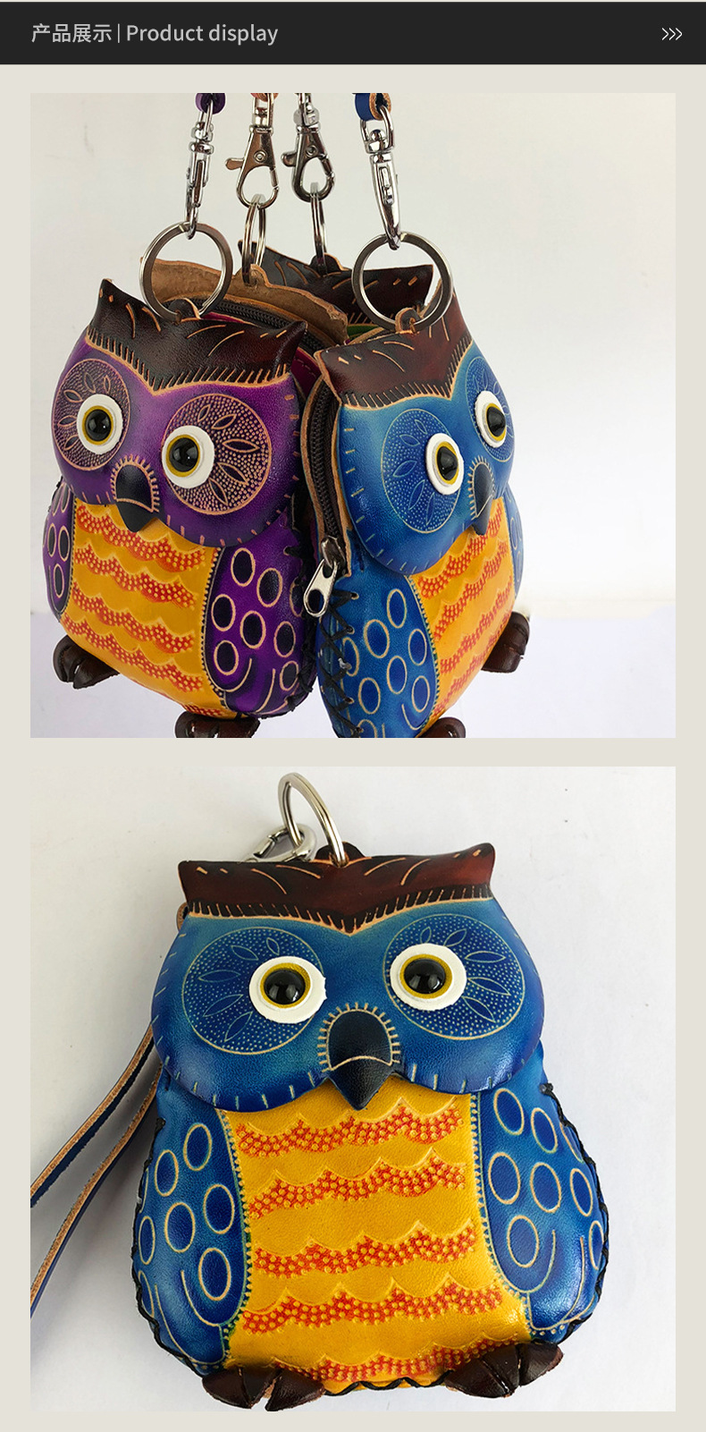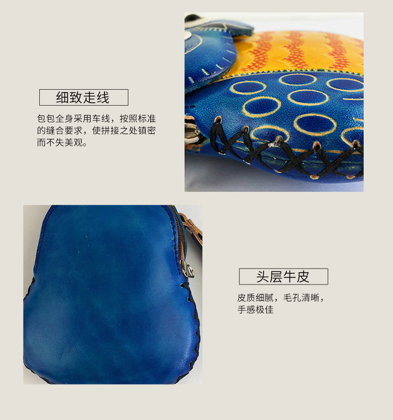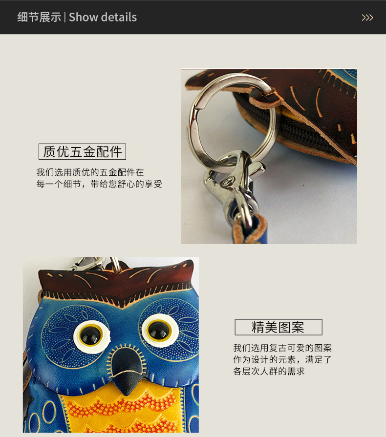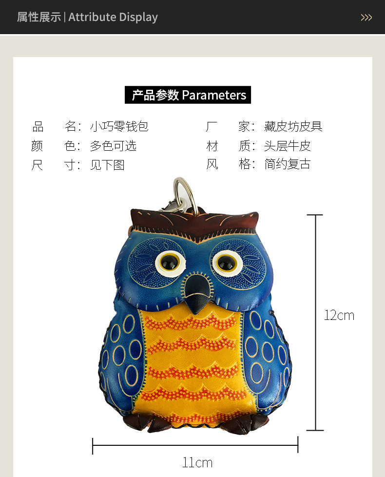 국경을 넘는 수제 소가죽 올빼미 동전 지갑, 개성 있고 귀여운 동물 여행 기념품, 만화 도매 수납스토어 가기