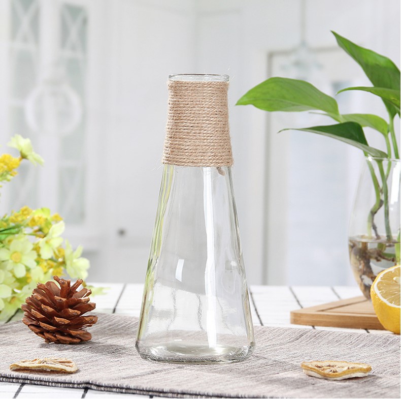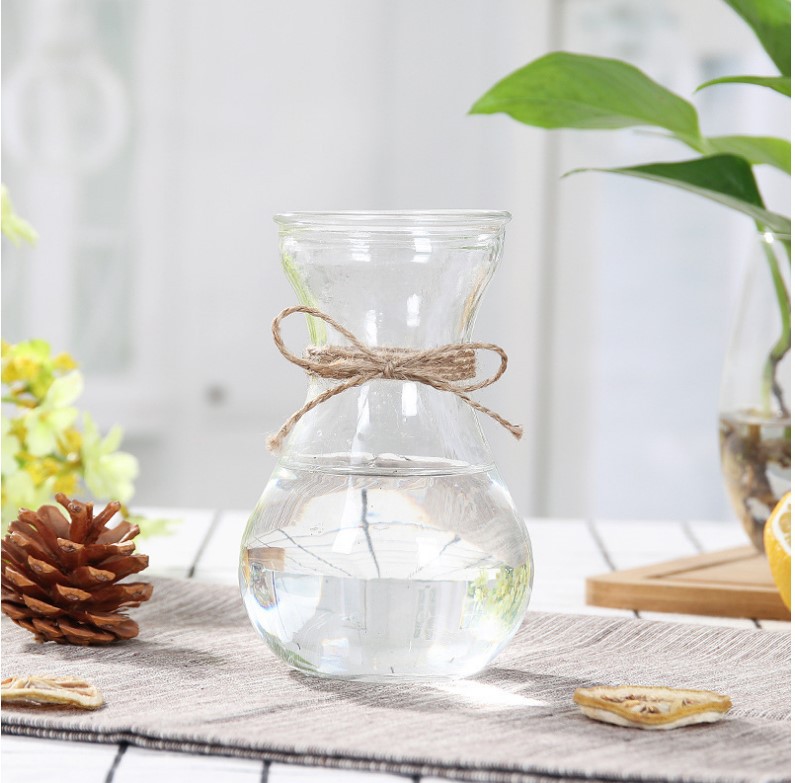 나디 식탁 빗방울 작은 꽃병 수경 식물 유리 꽃병 장식품 풍부한 대나무 창조적 인 대마 로프 꽃 배열스토어 가기