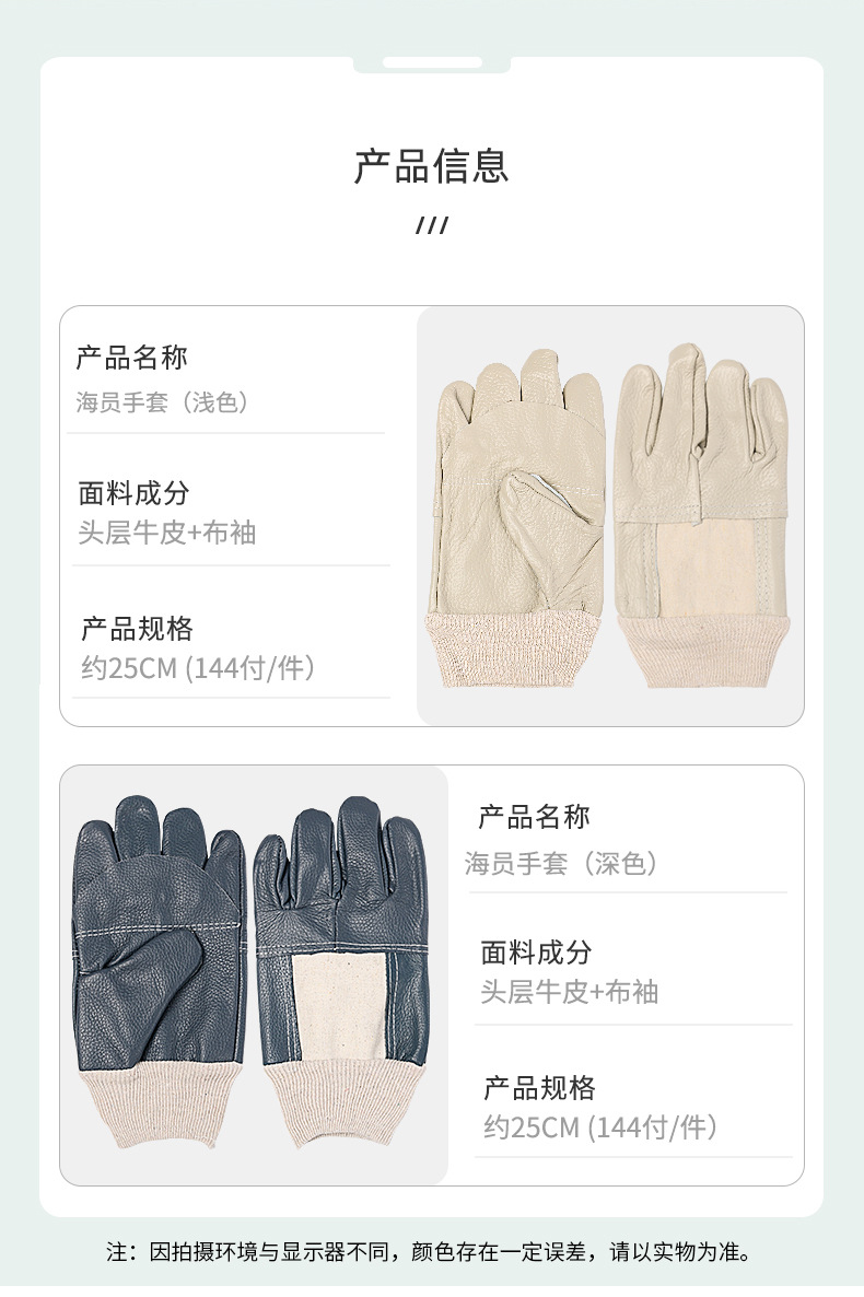 • 첫 번째 레이어 소가죽 선원 장갑 어두운