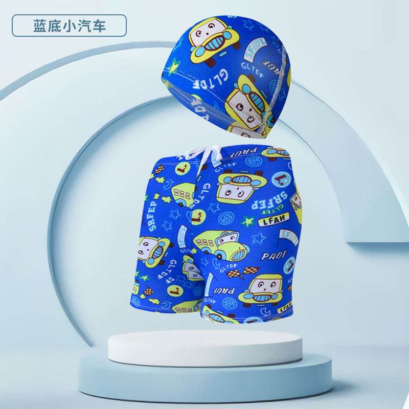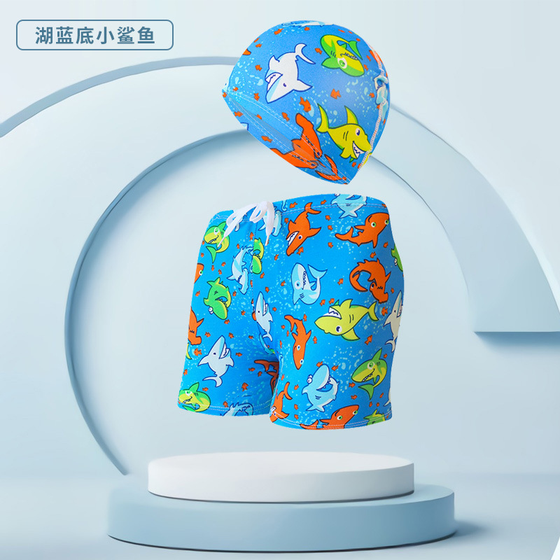 어린이 수영 트렁크 수영 모자 세트 십대 소년 귀여운 만화 복서 수영 트렁크 인쇄 해변 바지 도매스토어 가기