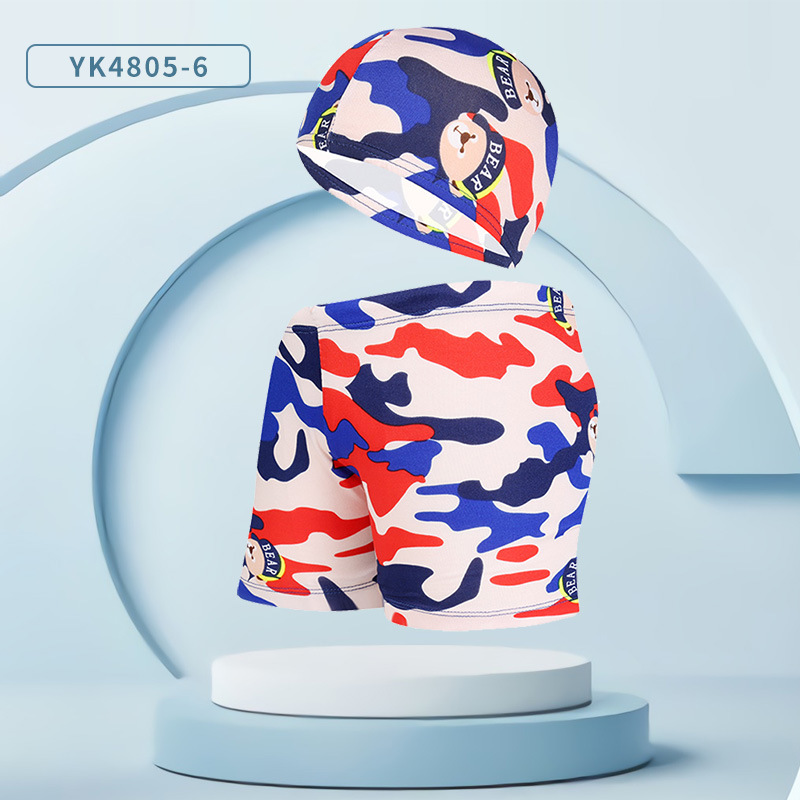 어린이 수영 트렁크 수영 모자 세트 십대 소년 귀여운 만화 복서 수영 트렁크 인쇄 해변 바지 도매