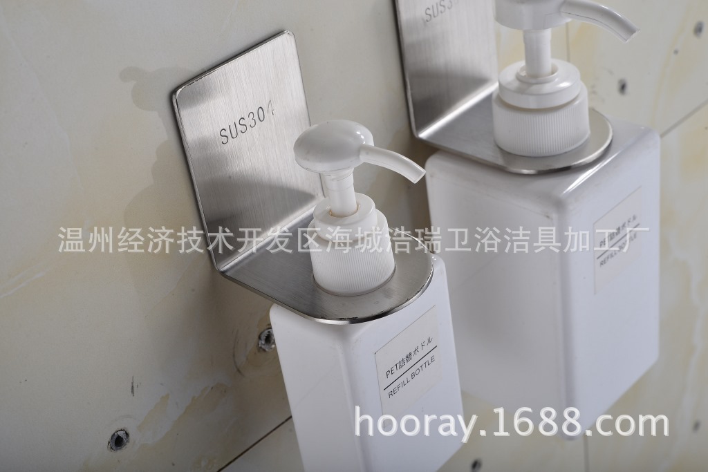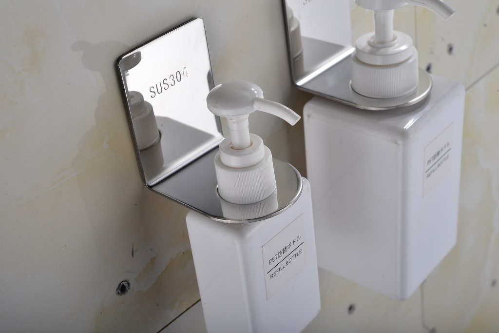 304 스테인리스 샴푸병 걸이 화장실 샤워젤 보관대 무자국 손세정제 병 클립 수납