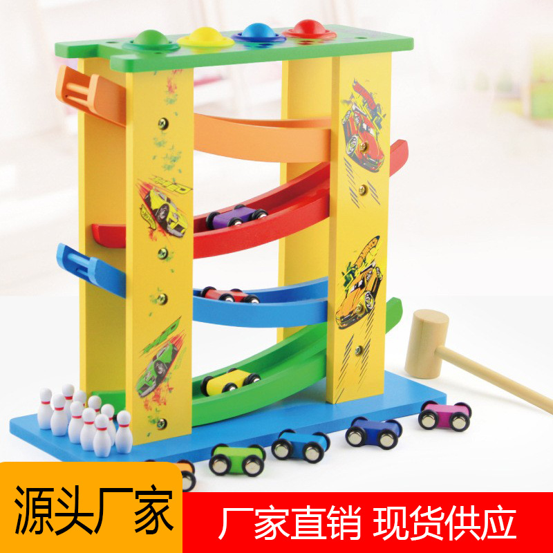 새로운 다기능 나무 어린이 교육 트랙 글라이더 아기 재미 조기 교육 관성 슬라이드 비행 자동차 나무스토어 가기