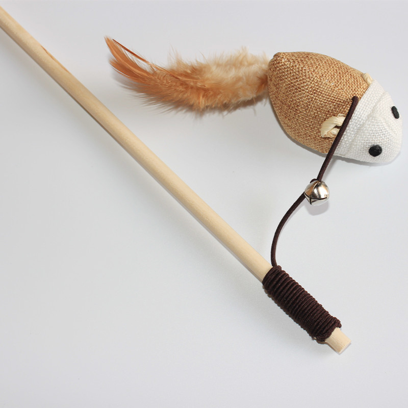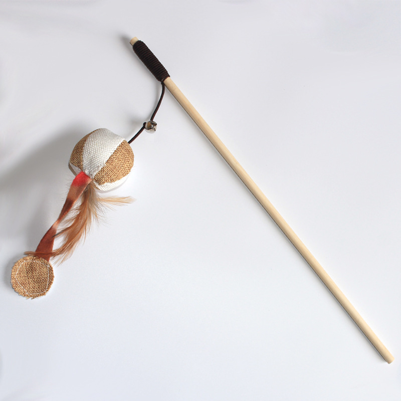 木质逗猫棒,杆长约40cm;