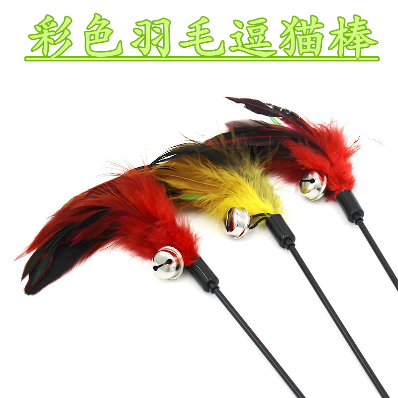 彩色羽毛逗猫棒杆长约60cm;