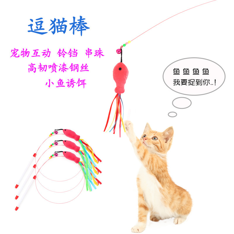 钢丝小鱼逗猫棒长约120cm;