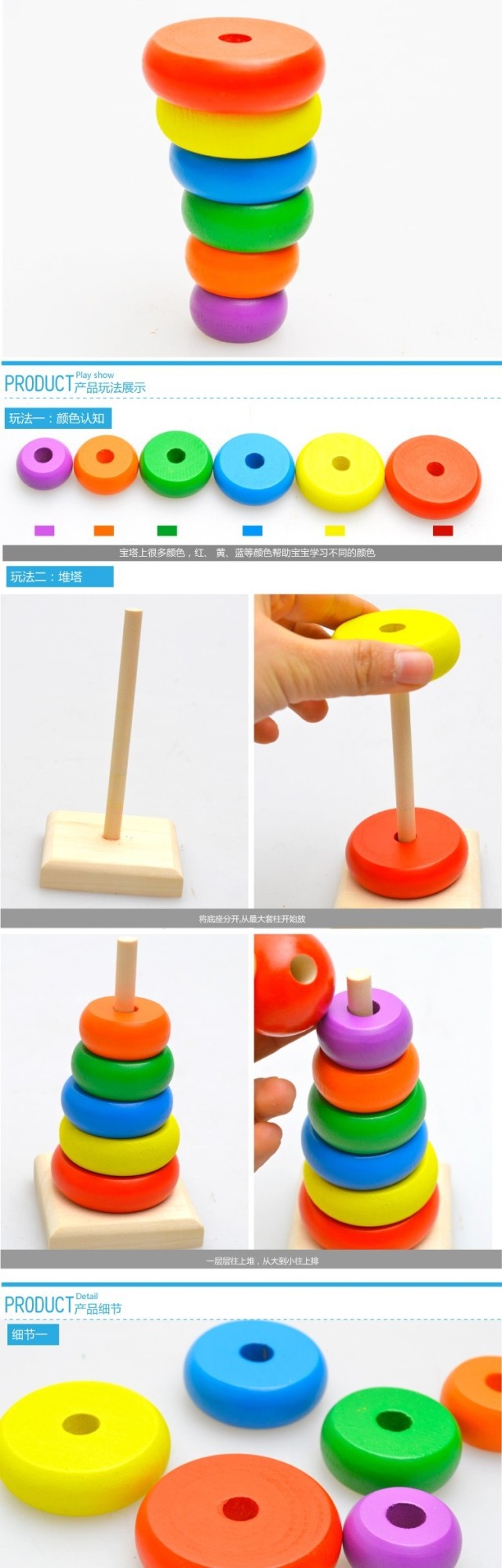 나무 레인보우 타워 스택 높은 스택 음악 정보 타워 링 나무 빌딩 블록 멩 조기 교육 완구 공장 콘센트스토어 가기