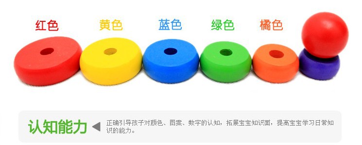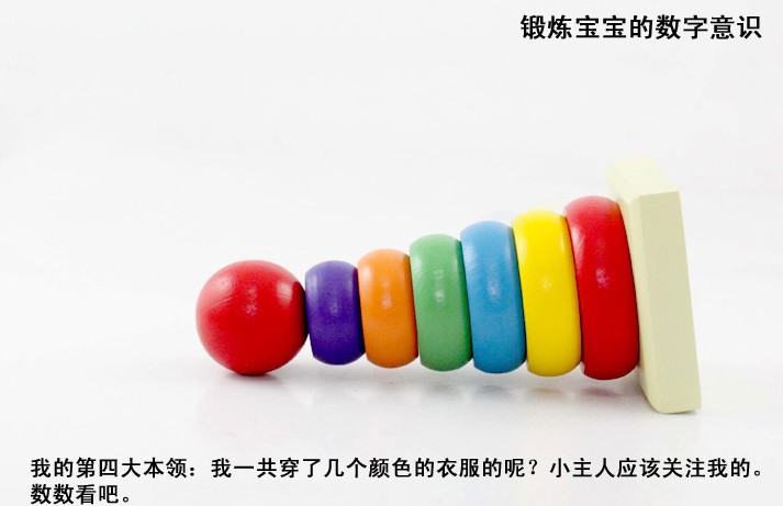 3、让宝宝将所有的圆环取下,比较一下大小,