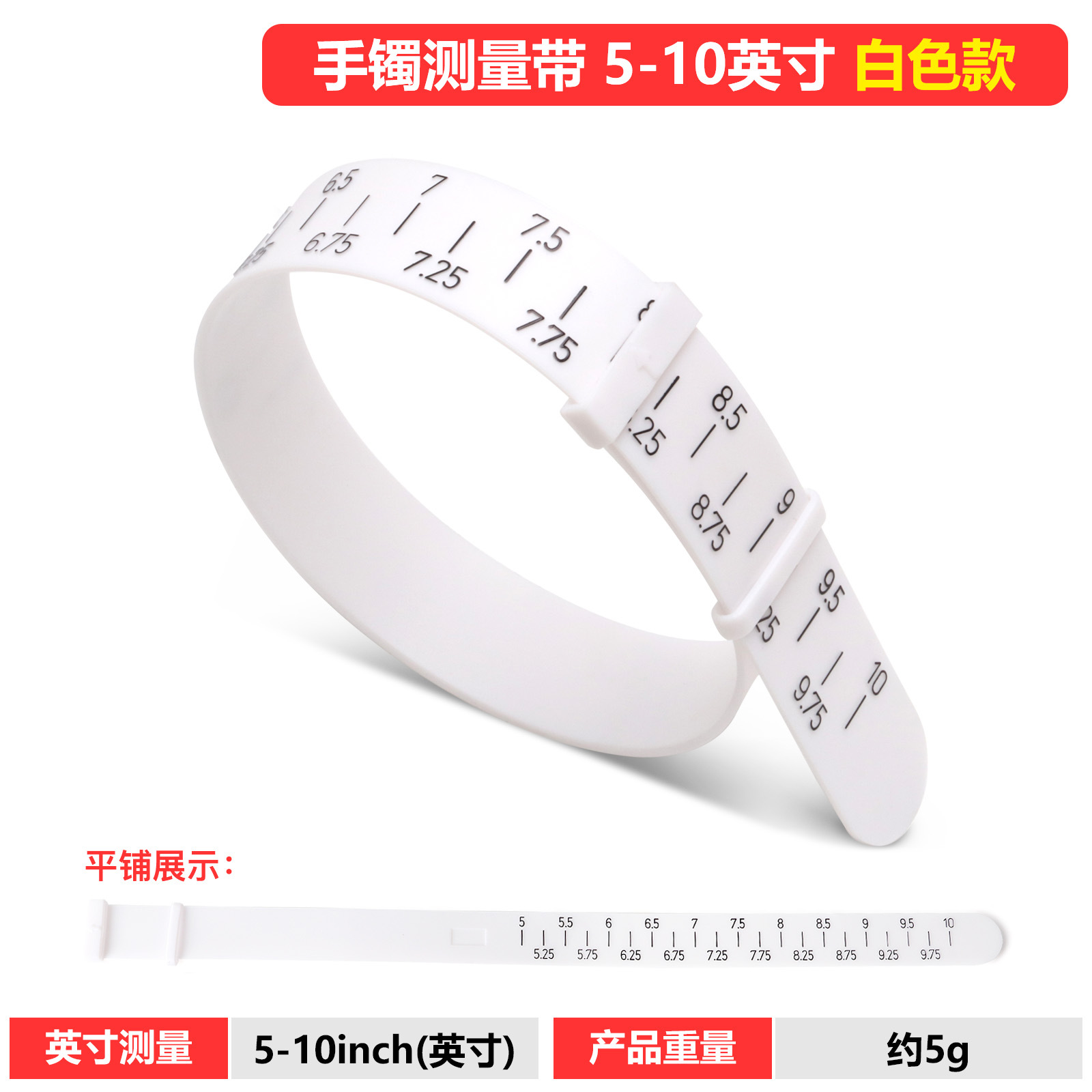 • 팔찌 측정 스트랩-화이트 (인치 사이즈)