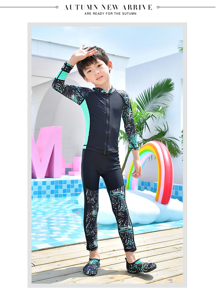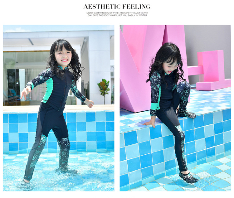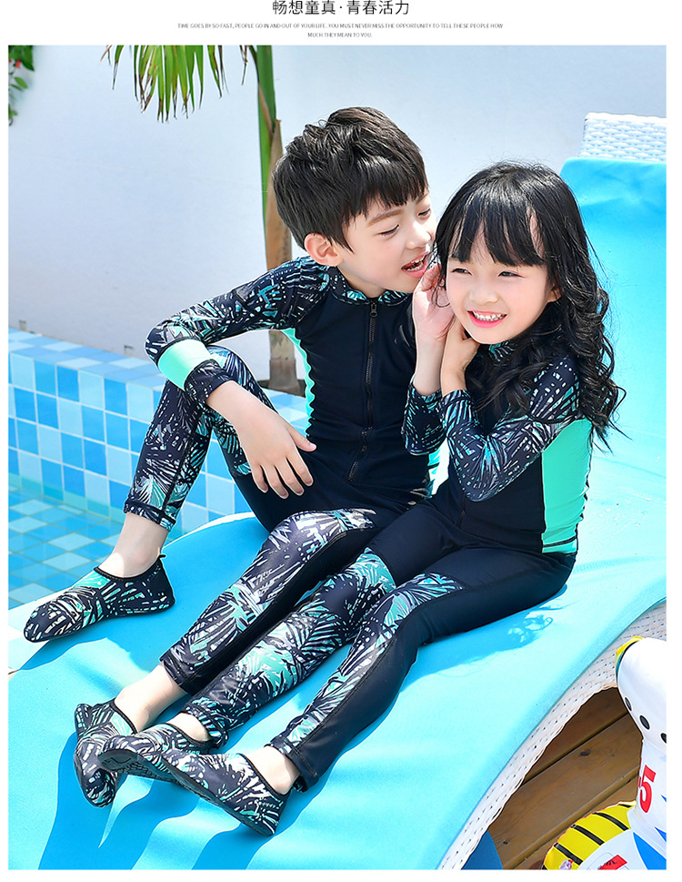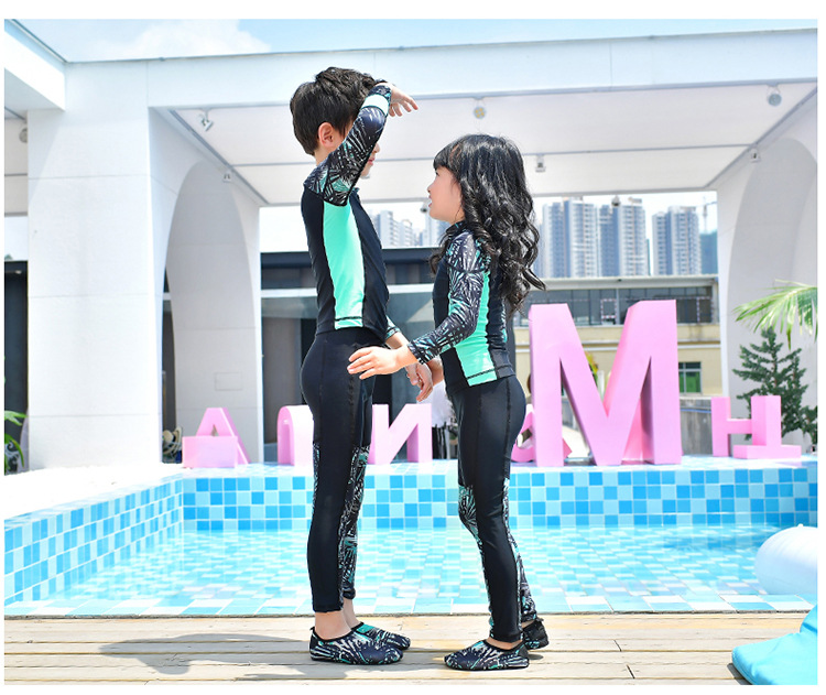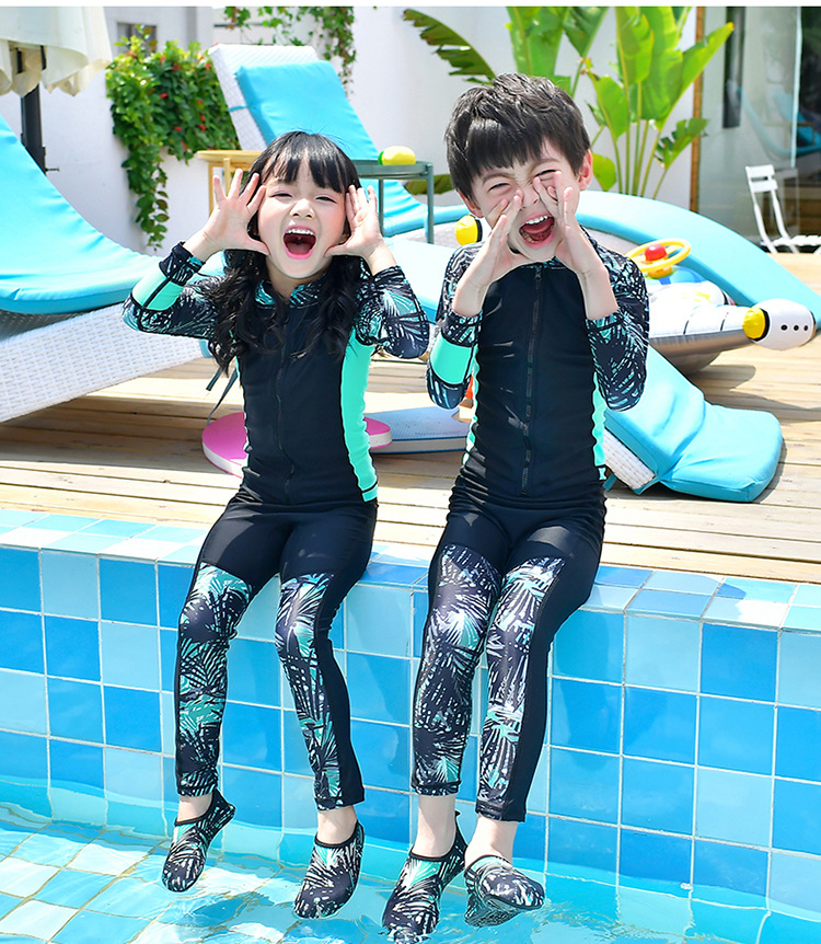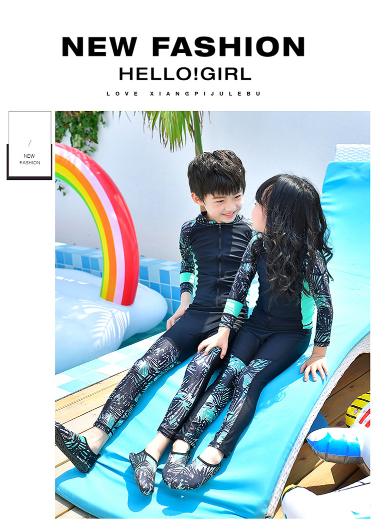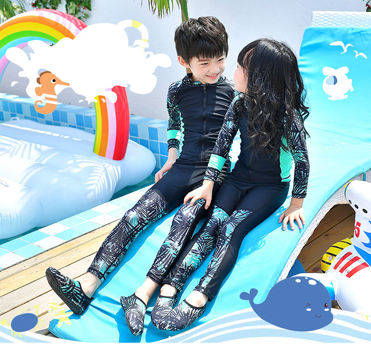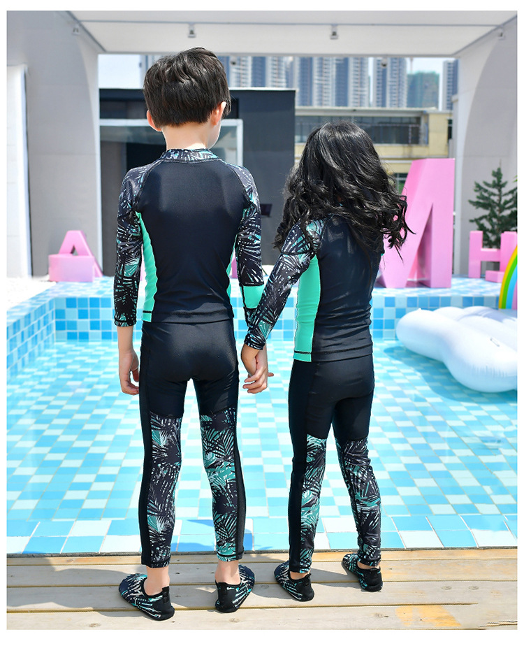 남학생과 여학생을 위한 새로운 스타일의 스플릿 수영복, 중대형 아동용 긴팔 자외선 차단 속건 수영 서핑 및 다이빙 슈트스토어 가기