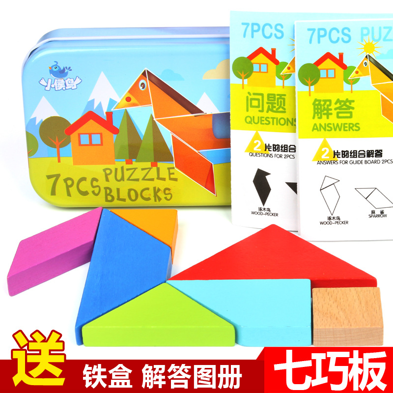 现代七巧板智力拼图儿童七巧板拼图拼板幼儿园益智积木带收纳盒