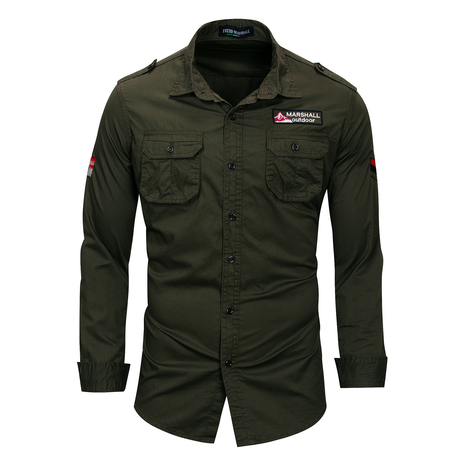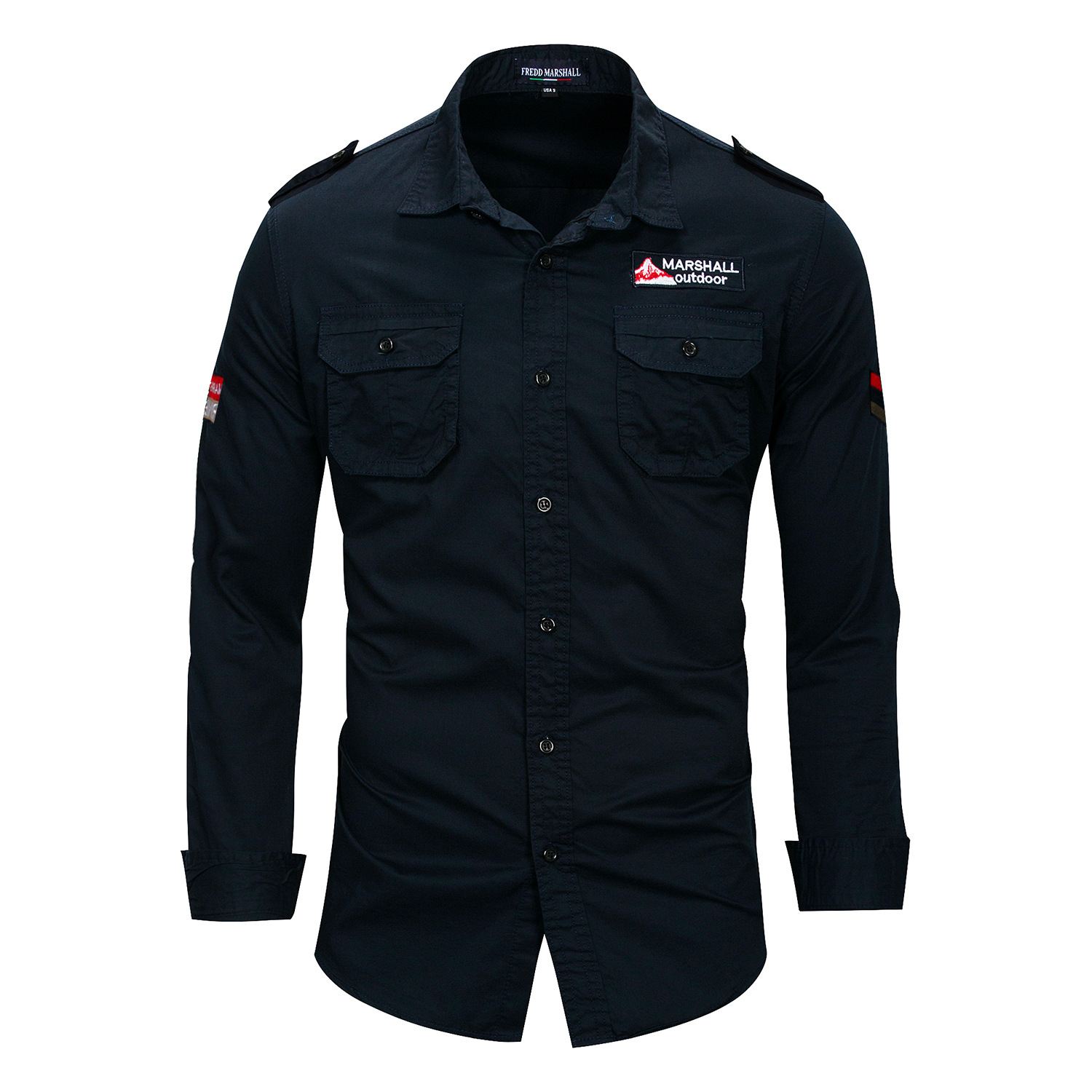 유럽과 미국 플러스 사이즈 남자의 긴 소매 옷깃 셔츠 면 야외 군사 캐주얼 포켓 셔츠 아마존 115