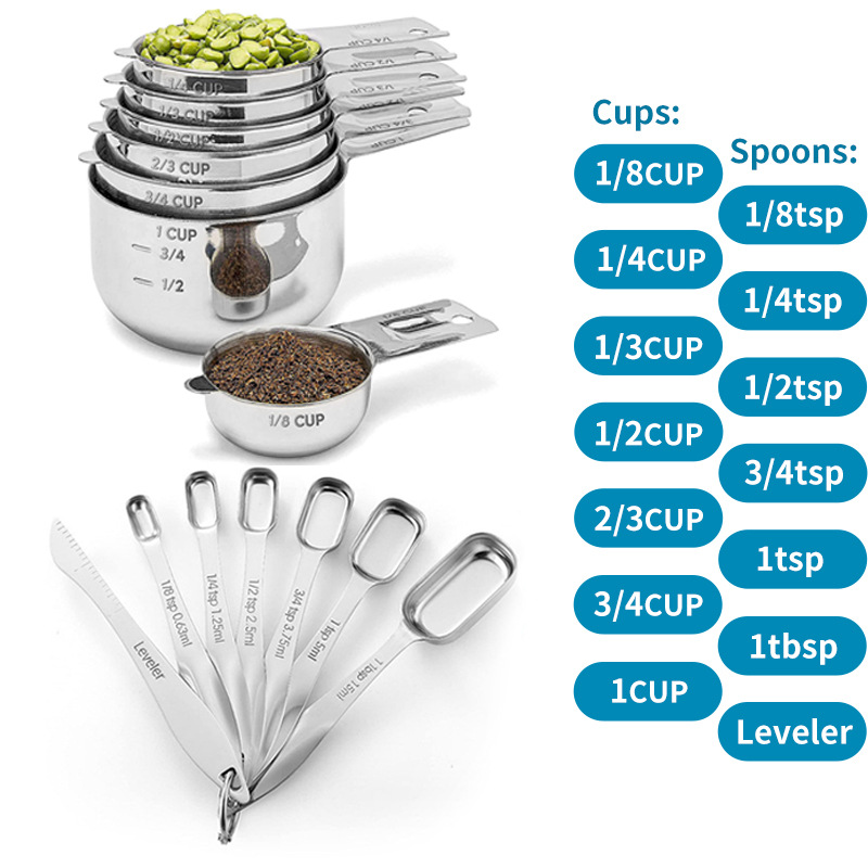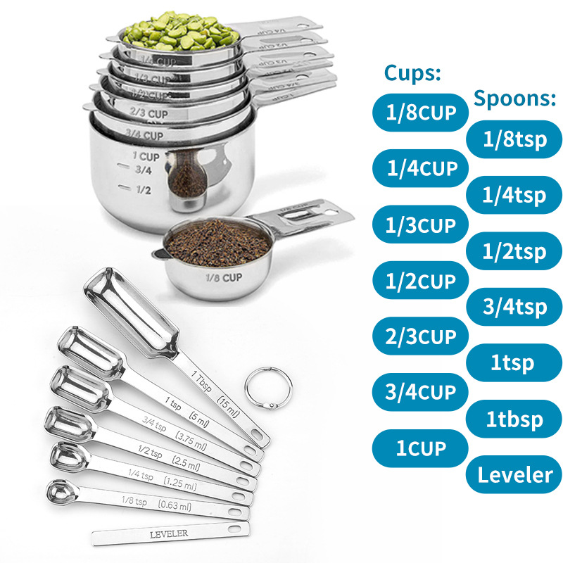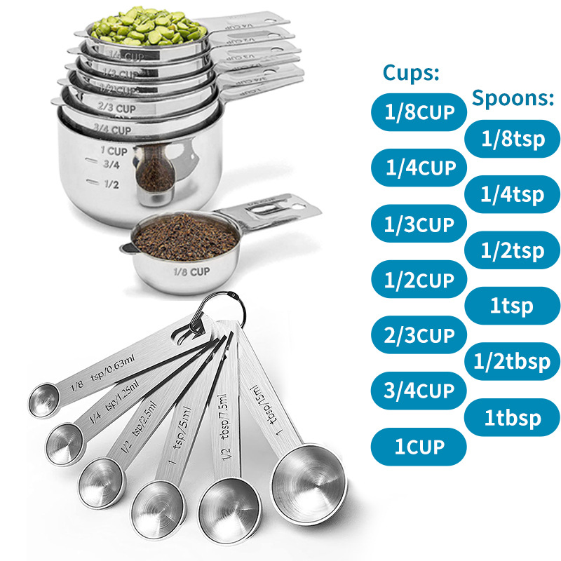 스테인레스 스틸 측정 숟가락 측정 컵 세트 베이킹 스케일 요리 조미료 숟가락 측정 도구 측정 컵