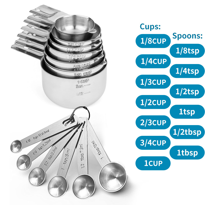 • 정사이즈 측정 컵 + 둥근 측정 숟가락 13 조각 세트