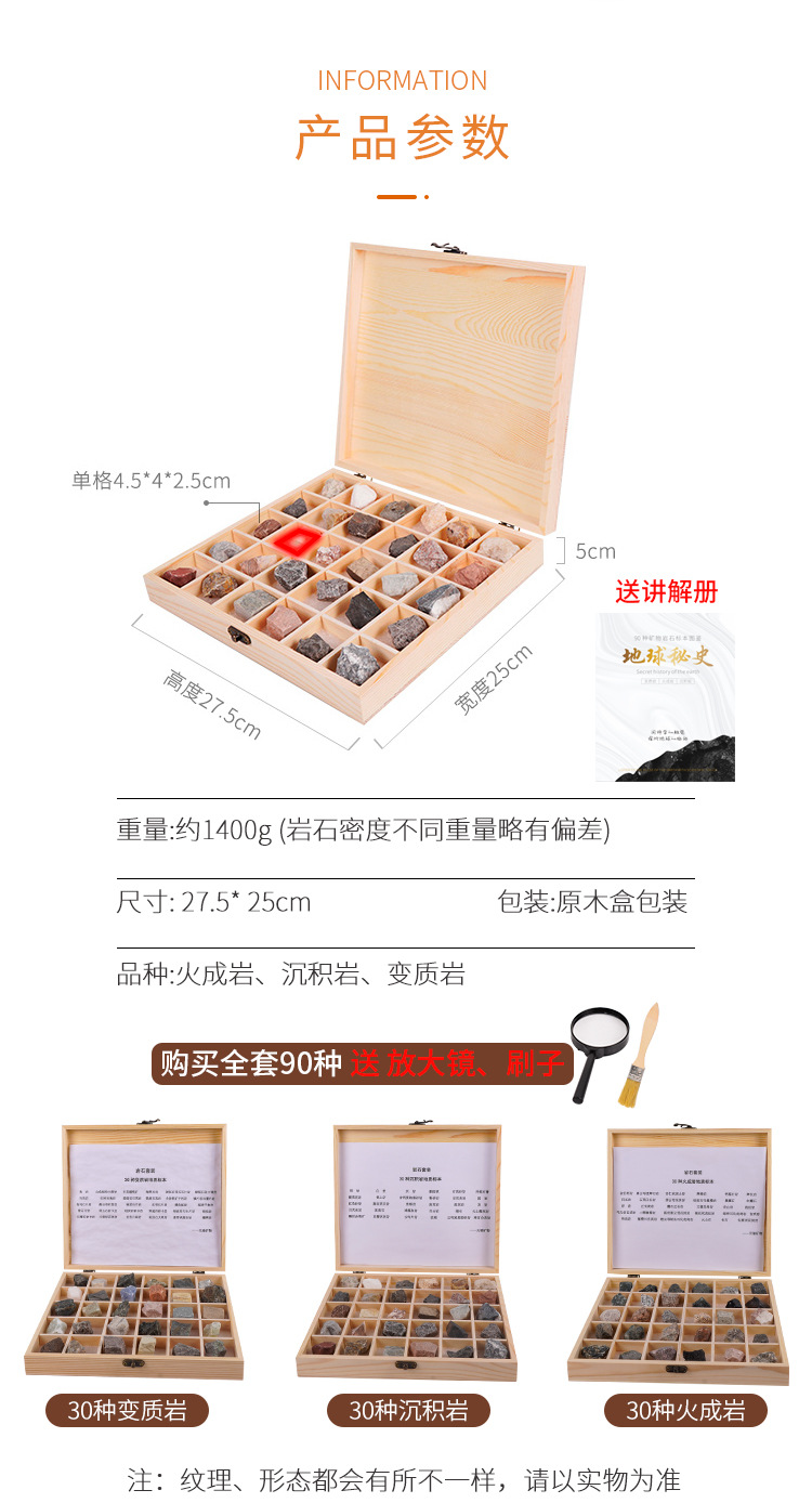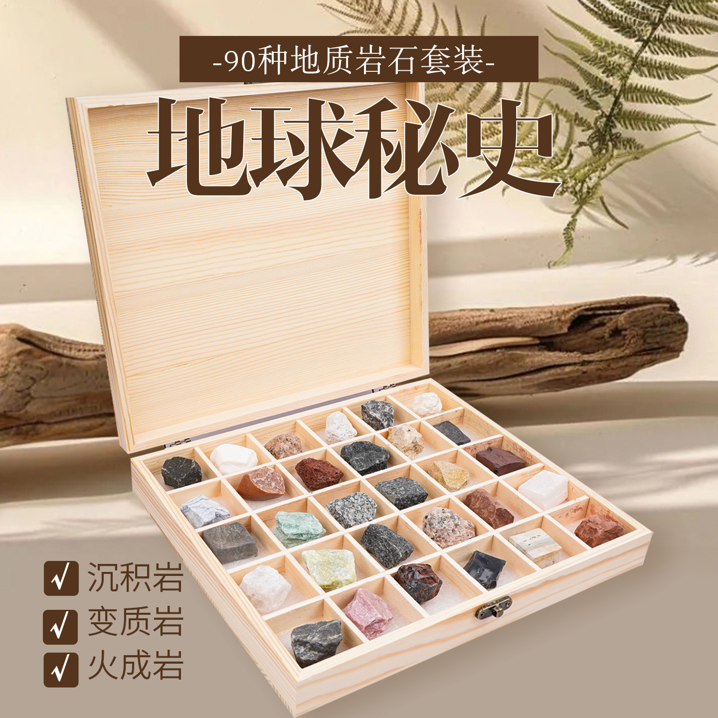 천연 미네랄 암 샘플 박스 90 종 어린이 교습 보조 광석 베어 스톤 흑요석 현무암 돌 장식품 원석스토어 가기