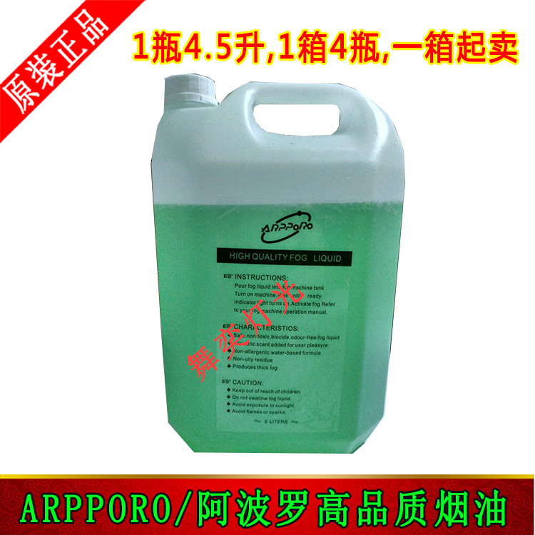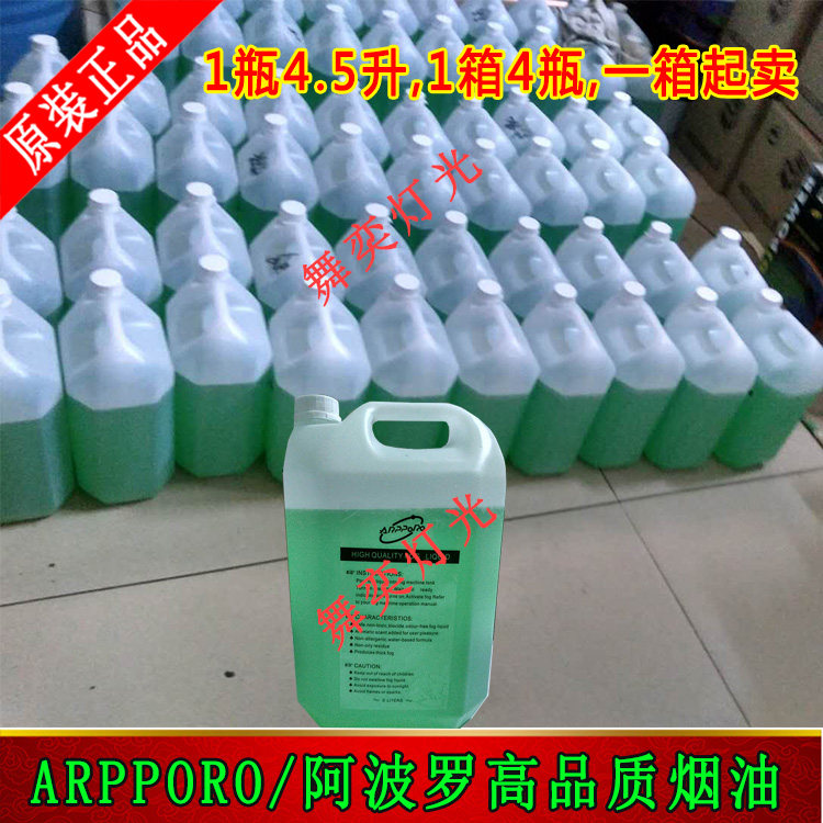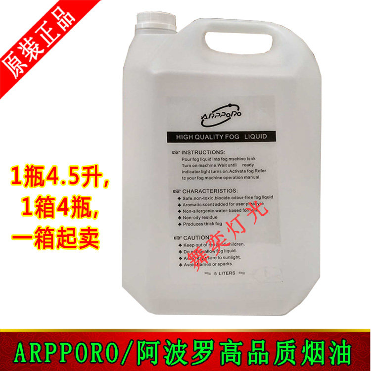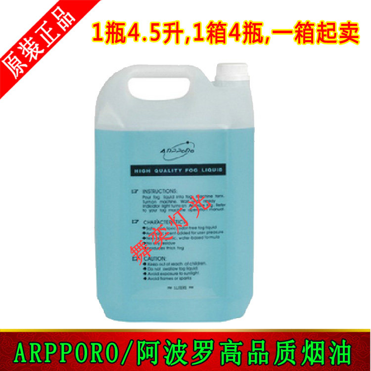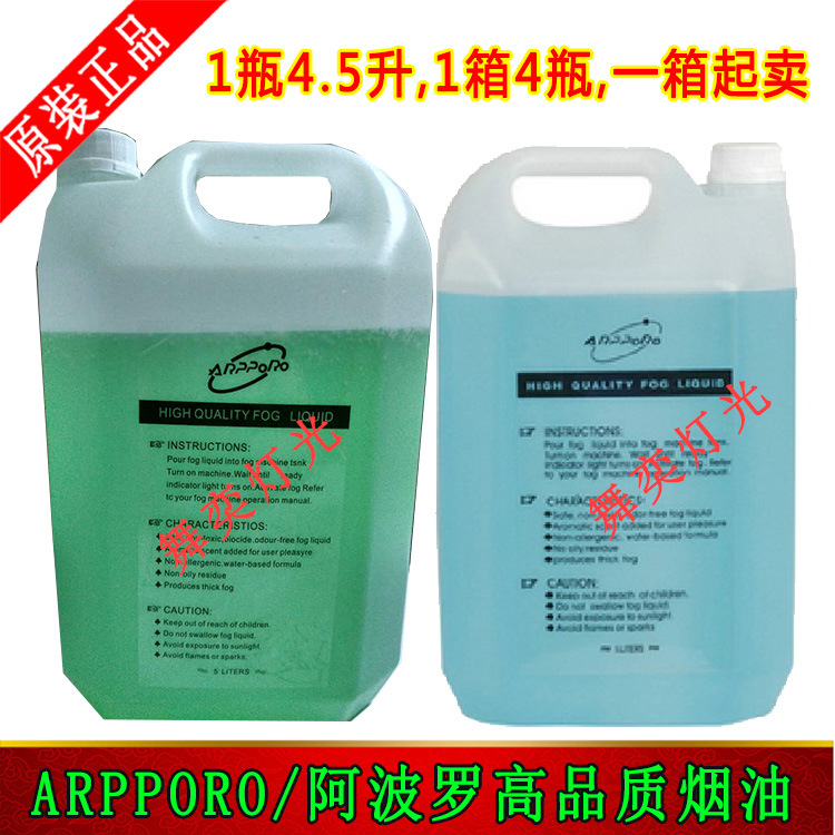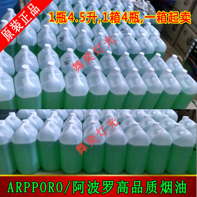 ARPPORO/阿波罗高纯度舞台烟雾油,高纯度演出专用烟雾油,采用纯净水及新环保配方制成,产生的烟雾为纯白色,在空气中保持时间较长,由于采用了新配方,所以不会产生油脂微粒,对化学玻璃及高档摄影设备无污染,并且大幅度降低了烟雾机的阻塞,适合各种高档场所使用。