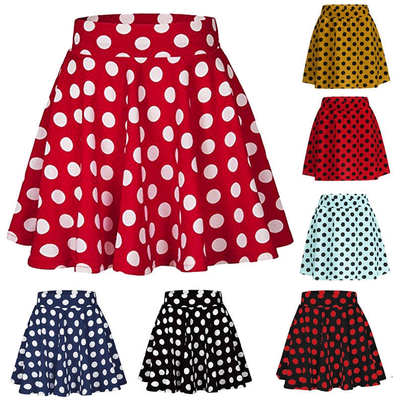 LN043 아마존 EBAY 크로스 보더 유럽과 미국 여름 베스트셀러 웨이브 포인트 미니 라지 스윙 스커트 레드 스커트스토어 가기