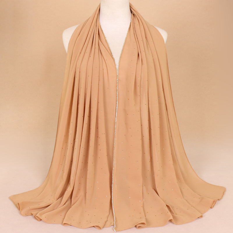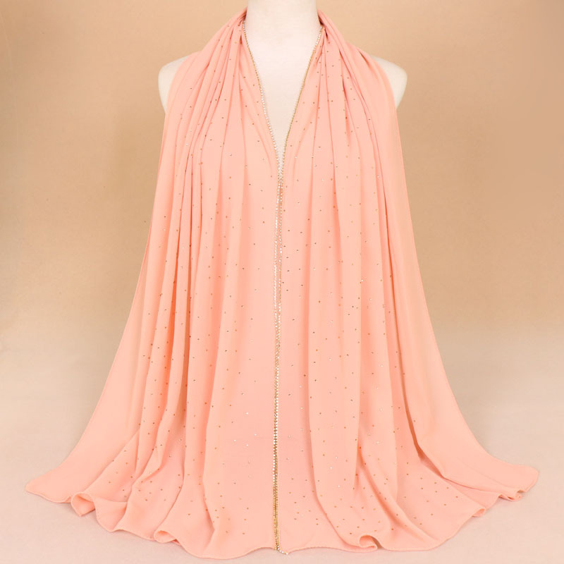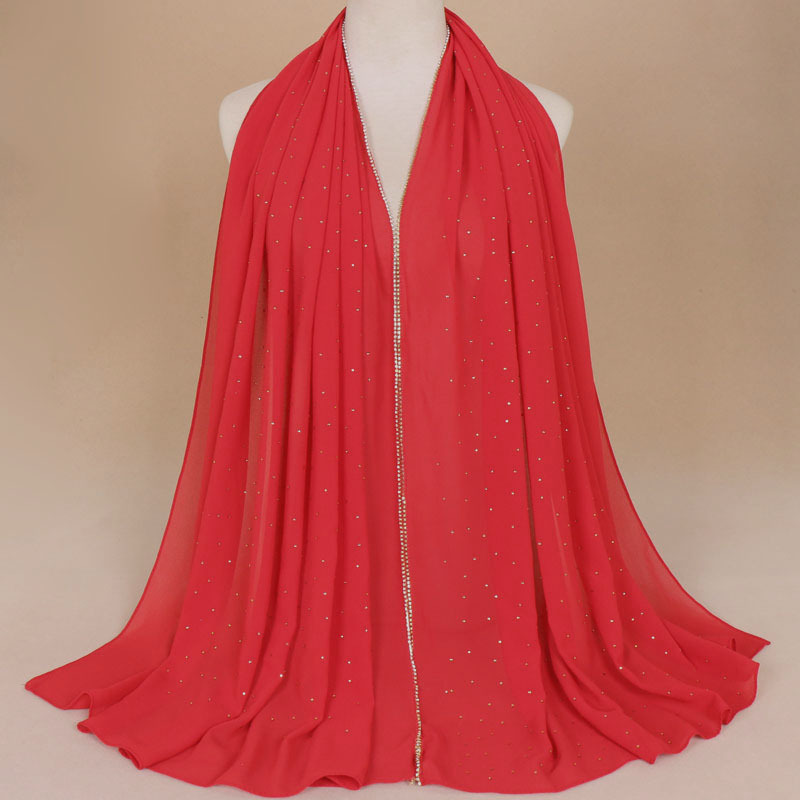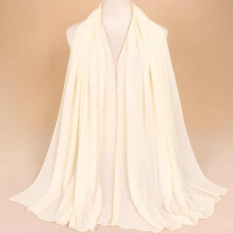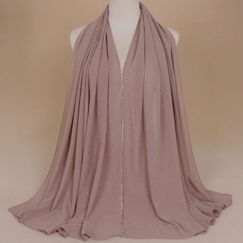 말레이시아 여성용 체인 스카프 스카프 여성용 싱글 컬러 진주 쉬폰 라인 석 스카프 롱 스카프 숄 YW70