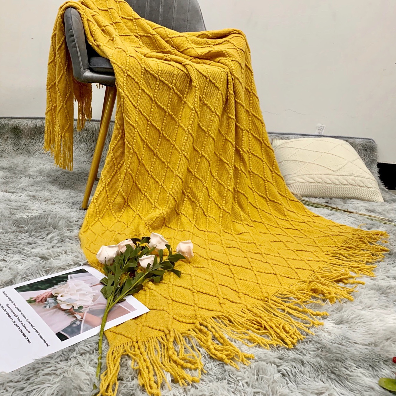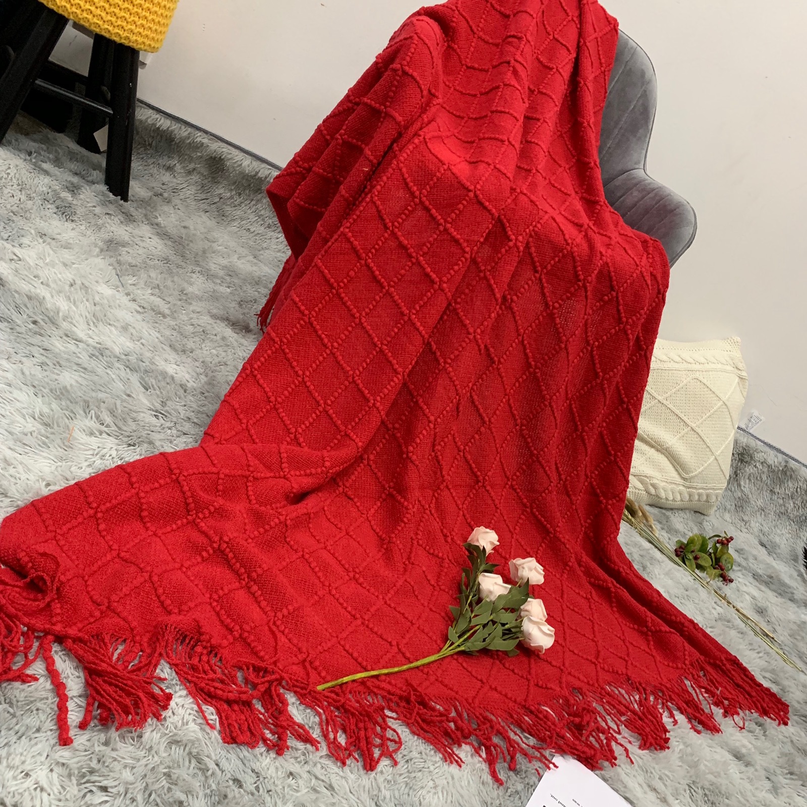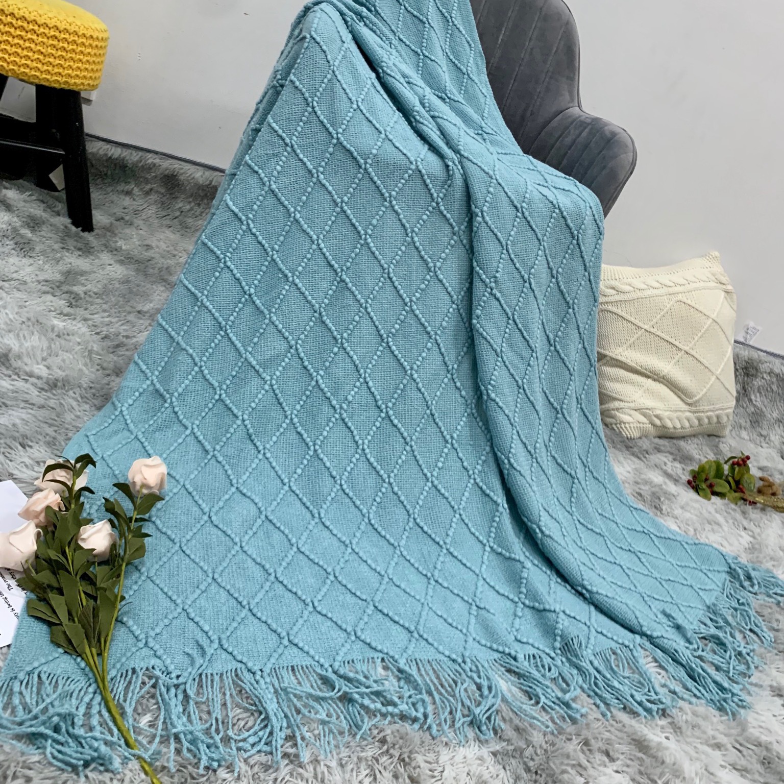 인스 니트 담요, 소파 담요, 숄 담요, 침대 옆 담요, B&B 침대 옆 수건, 담요, 낮잠 담요, 침대 담요