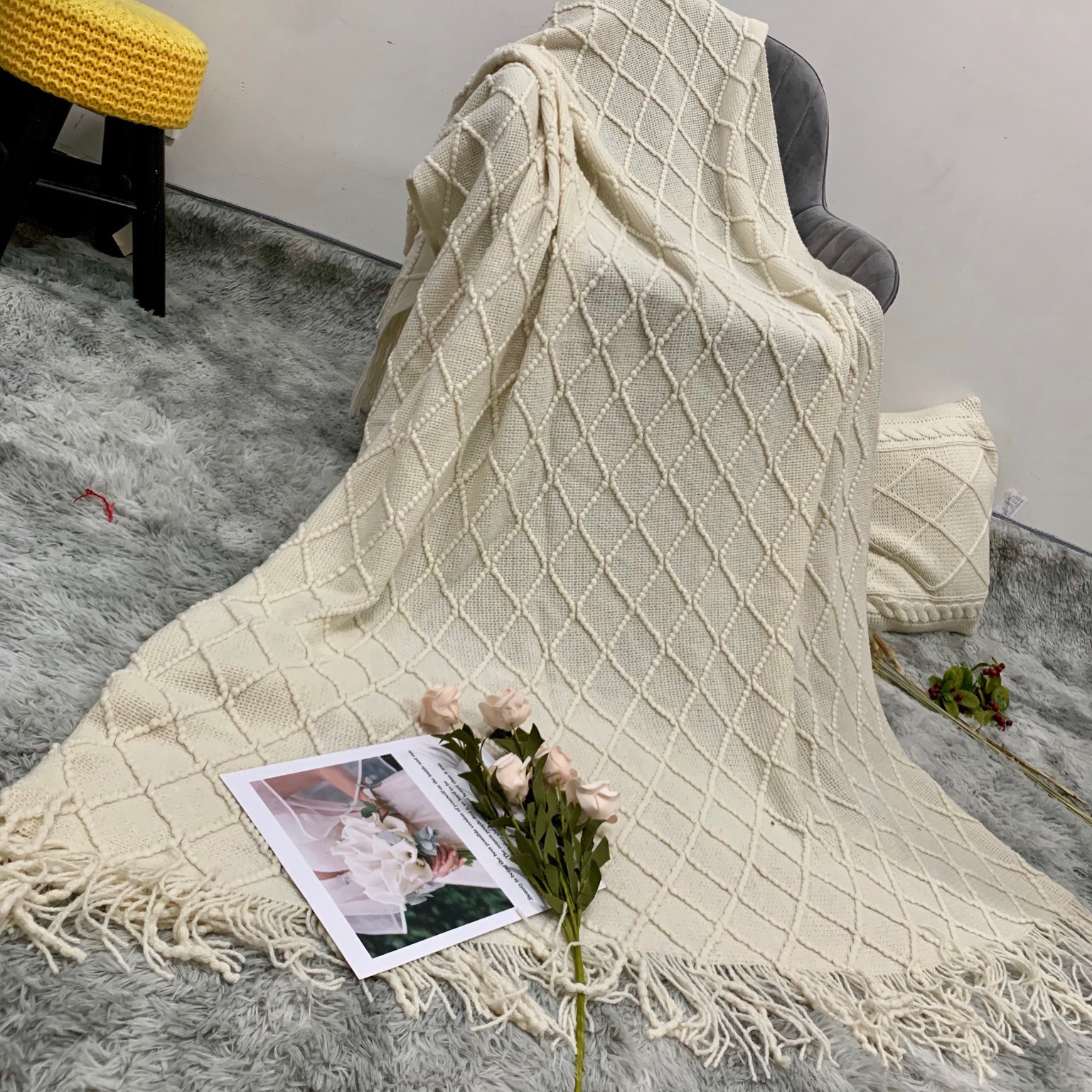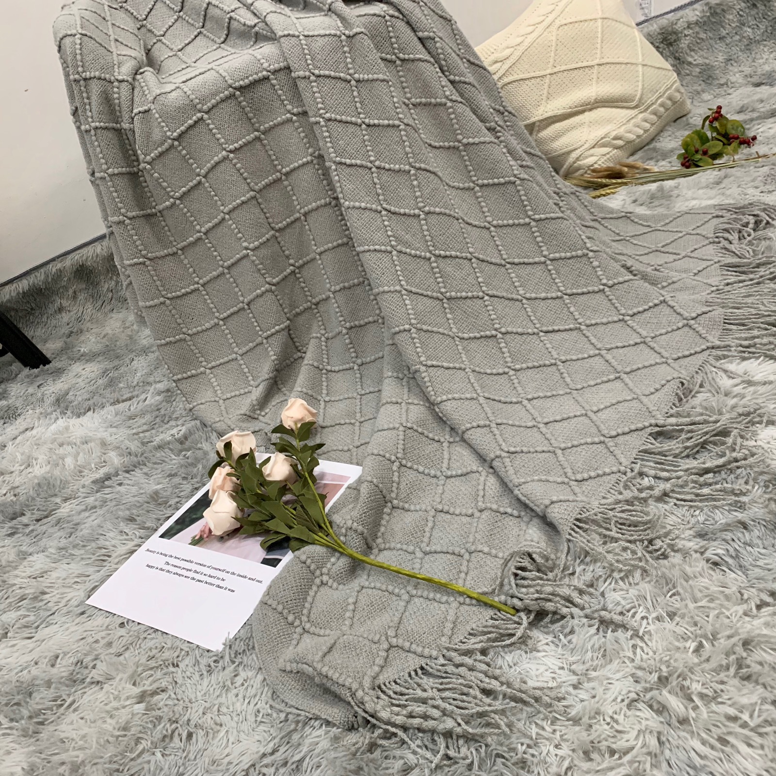 인스 니트 담요, 소파 담요, 숄 담요, 침대 옆 담요, B&B 침대 옆 수건, 담요, 낮잠 담요, 침대 담요스토어 가기