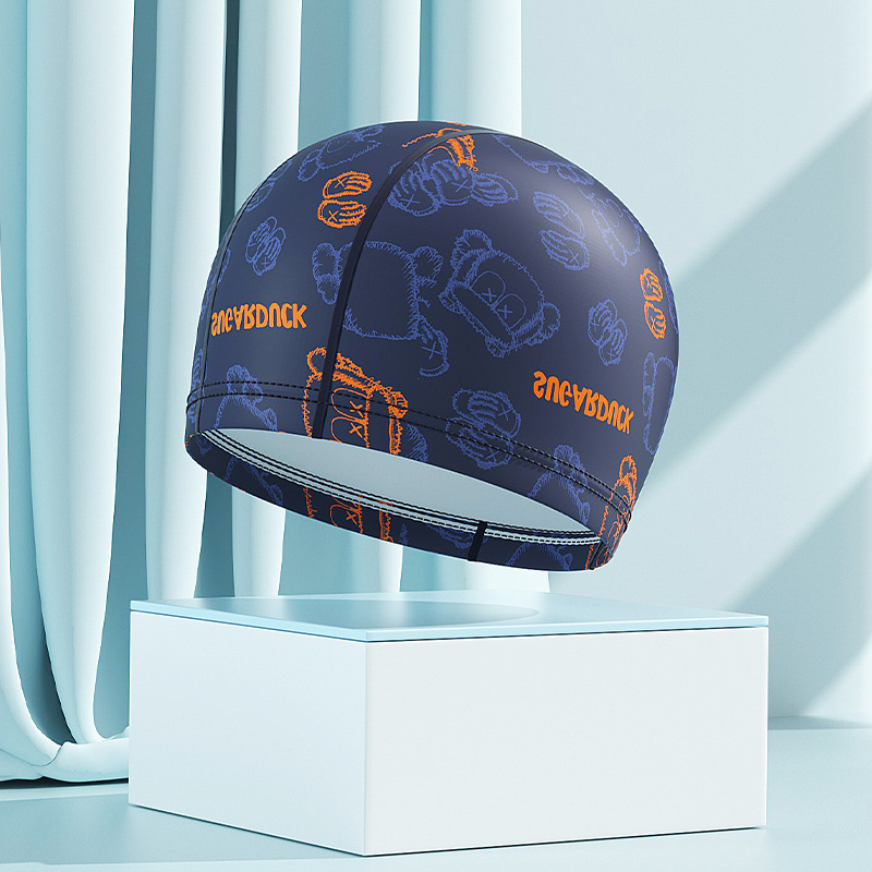 새로운 수영 모자 남성용 편안한 패브릭 천 수영 모자 고탄성 통기성 소프트 헤드