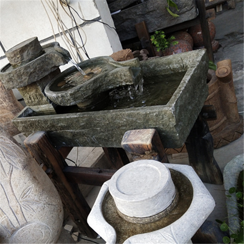 재고 오래된 돌 물마루 물고기 탱크 안뜰 행운의 암소 물마루 물 조합 실내 블루 스톤 라운드 말 물마루 돌 조각 장식품스토어 가기
